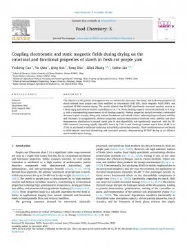 Coupling electrostatic and static magnetic fields during drying on the structural and functional properties of starch in fresh-cut purple yam