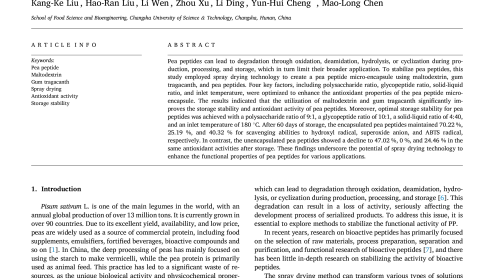 Enhancing storage stability of pea peptides through encapsulation in maltodextrin and gum tragacanth via monitoring scavenge ability to free radicals