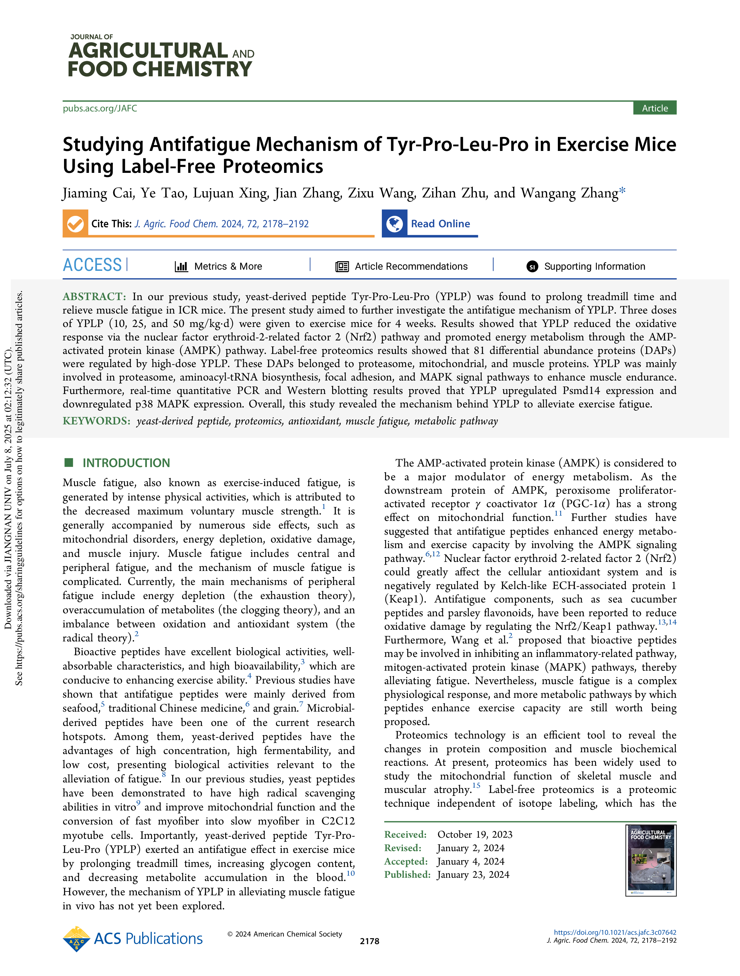 Studying Antifatigue Mechanism of Tyr-Pro-Leu-Pro in Exercise Mice Using Label-Free Proteomics.pdf