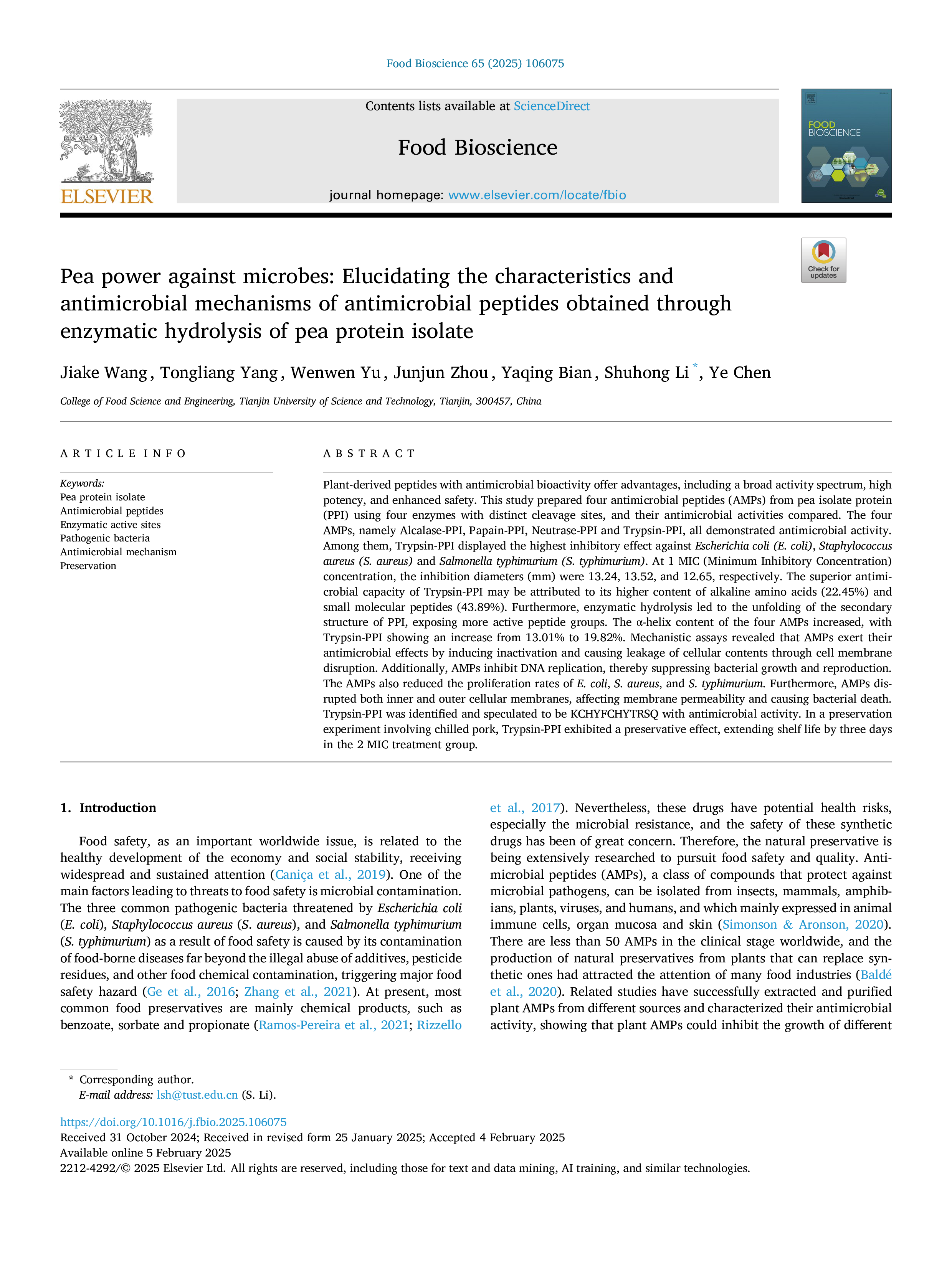 Pea power against microbes: Elucidating the characteristics and antimicrobial mechanisms of antimicrobial peptides obtained through enzymatic hydrolysis of pea protein isolate