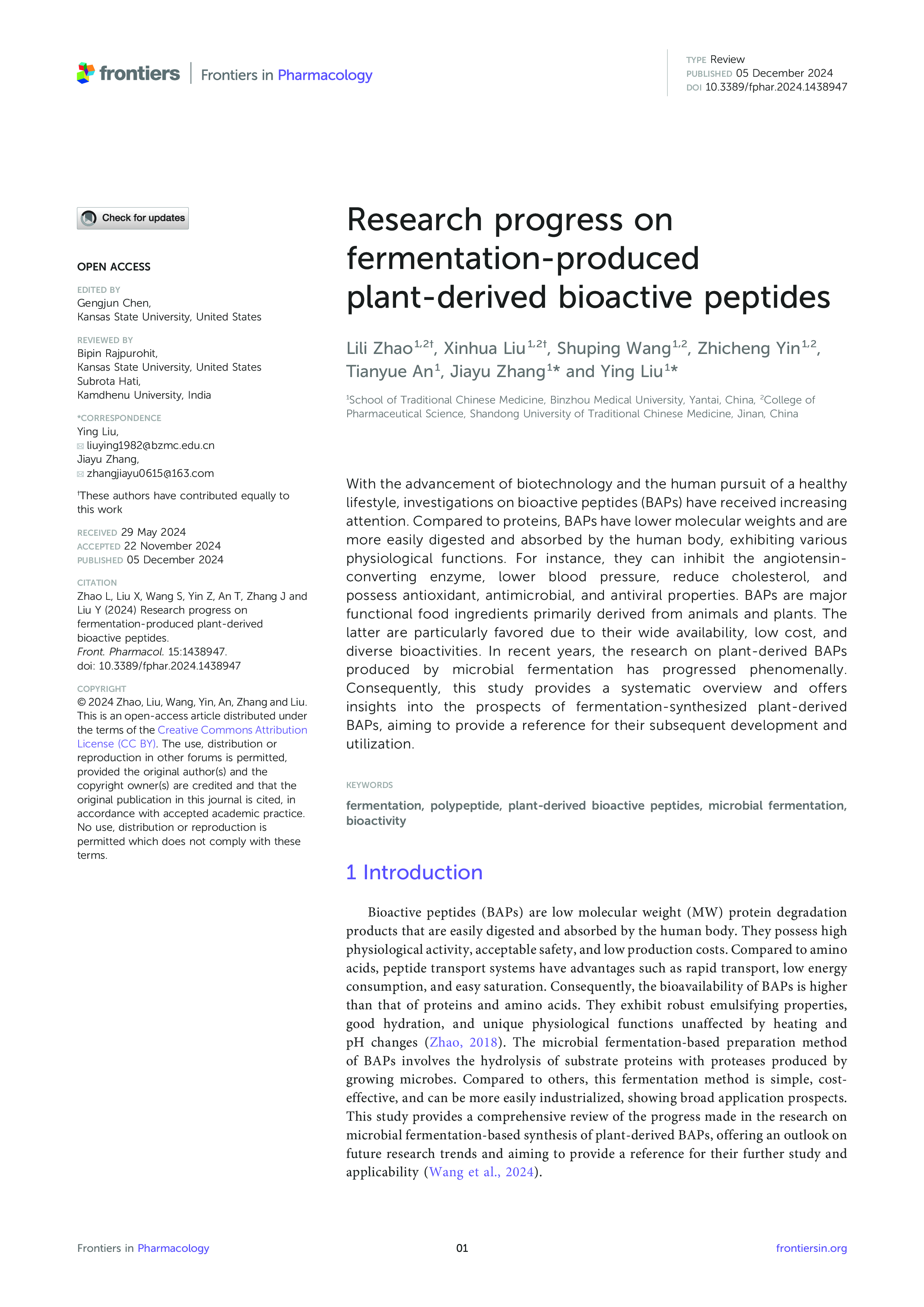 Research progress on fermentation-produced plant-derived bioactive peptides.pdf