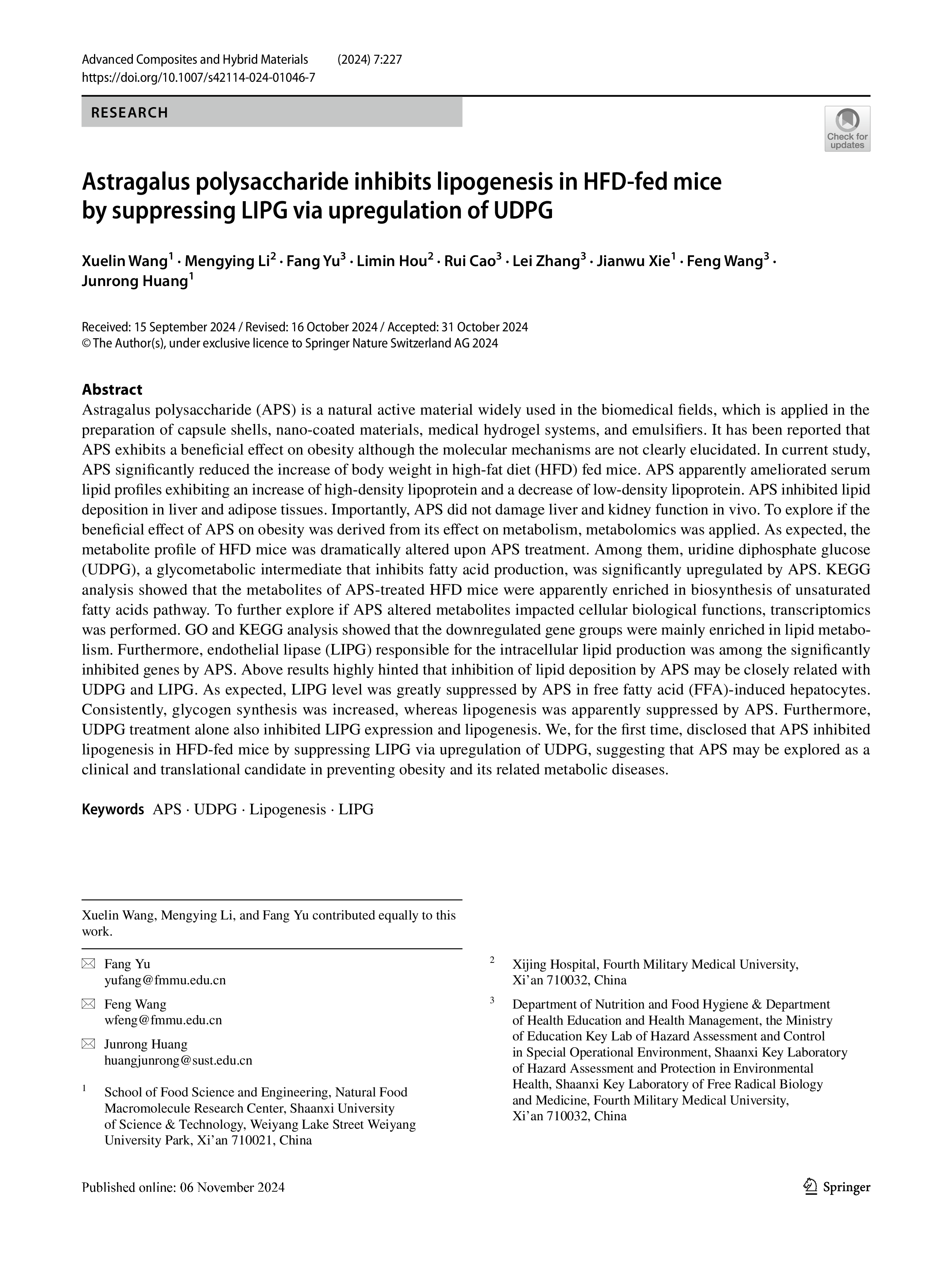 Astragalus polysaccharide inhibits lipogenesis in HFD‑fed mice by suppressing LIPG via upregulation of UDPG.pdf