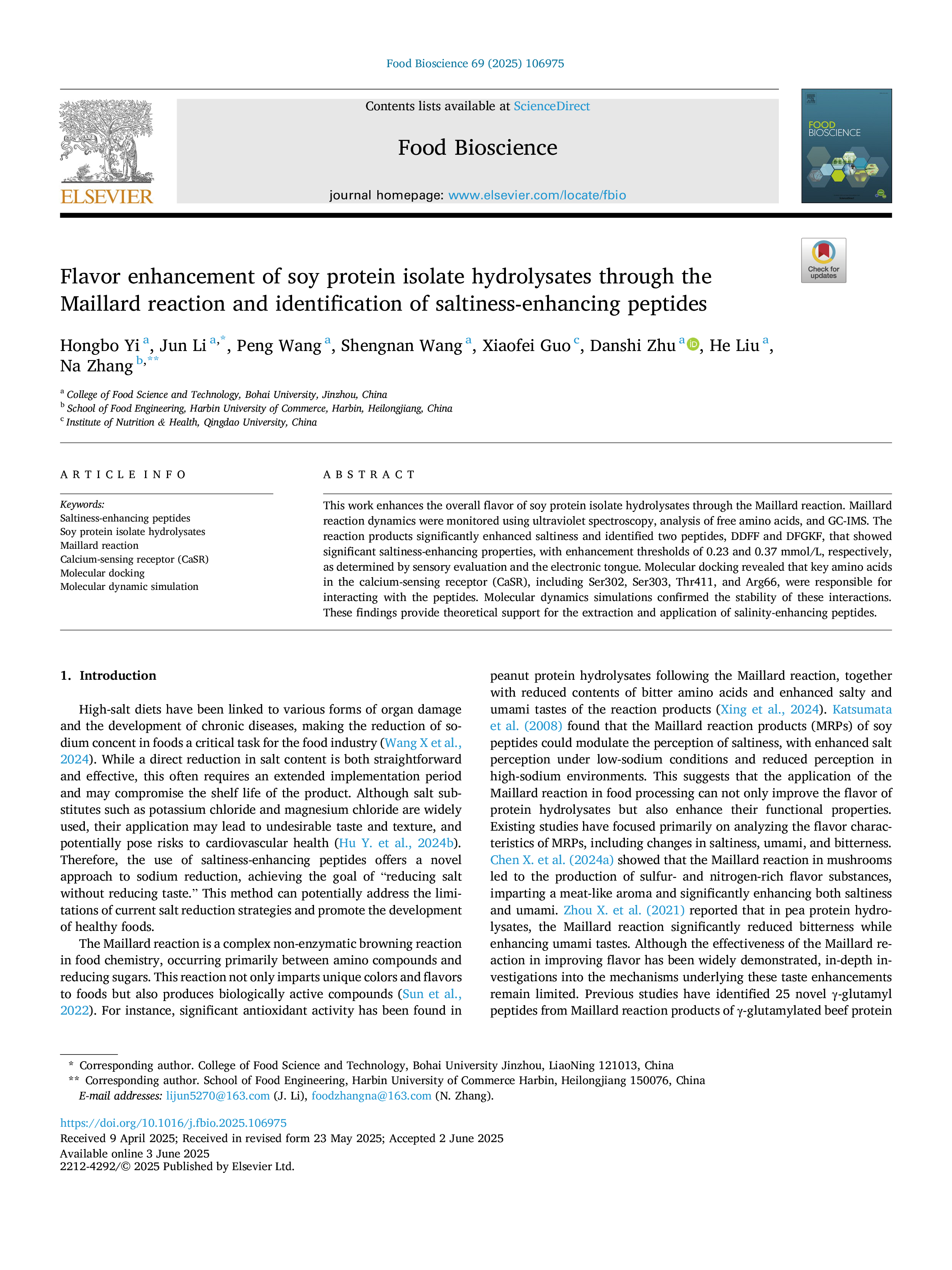 Molecular elucidation of the identification of novel saltiness-enhancing peptides and taste mechanism from soybean protein isolate based on transmembrane channel-like 4 (TMC4)1 知币4人下载