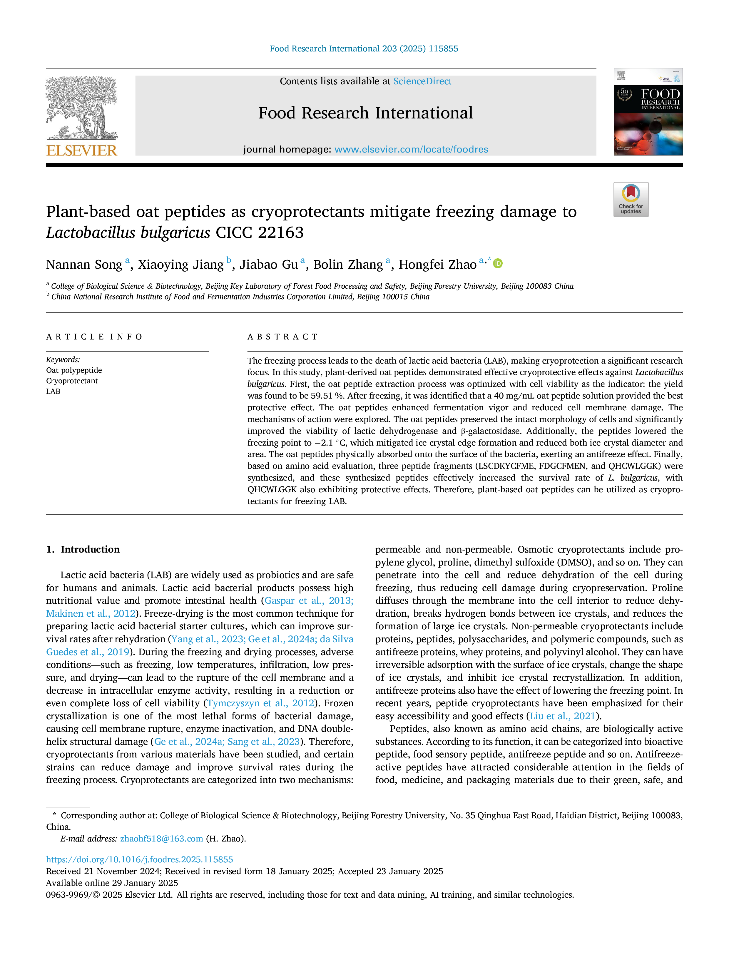Plant-based oat peptides as cryoprotectants mitigate freezing damage to Lactobacillus bulgaricus CICC 22163.pdf