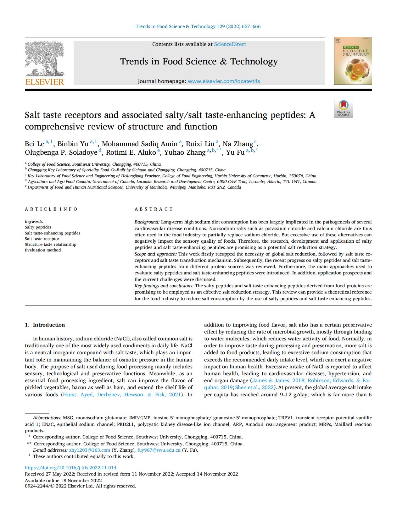 Molecular elucidation of the identification of novel saltiness-enhancing peptides and taste mechanism from soybean protein isolate based on transmembrane channel-like 4 (TMC4)1 知币4人下载