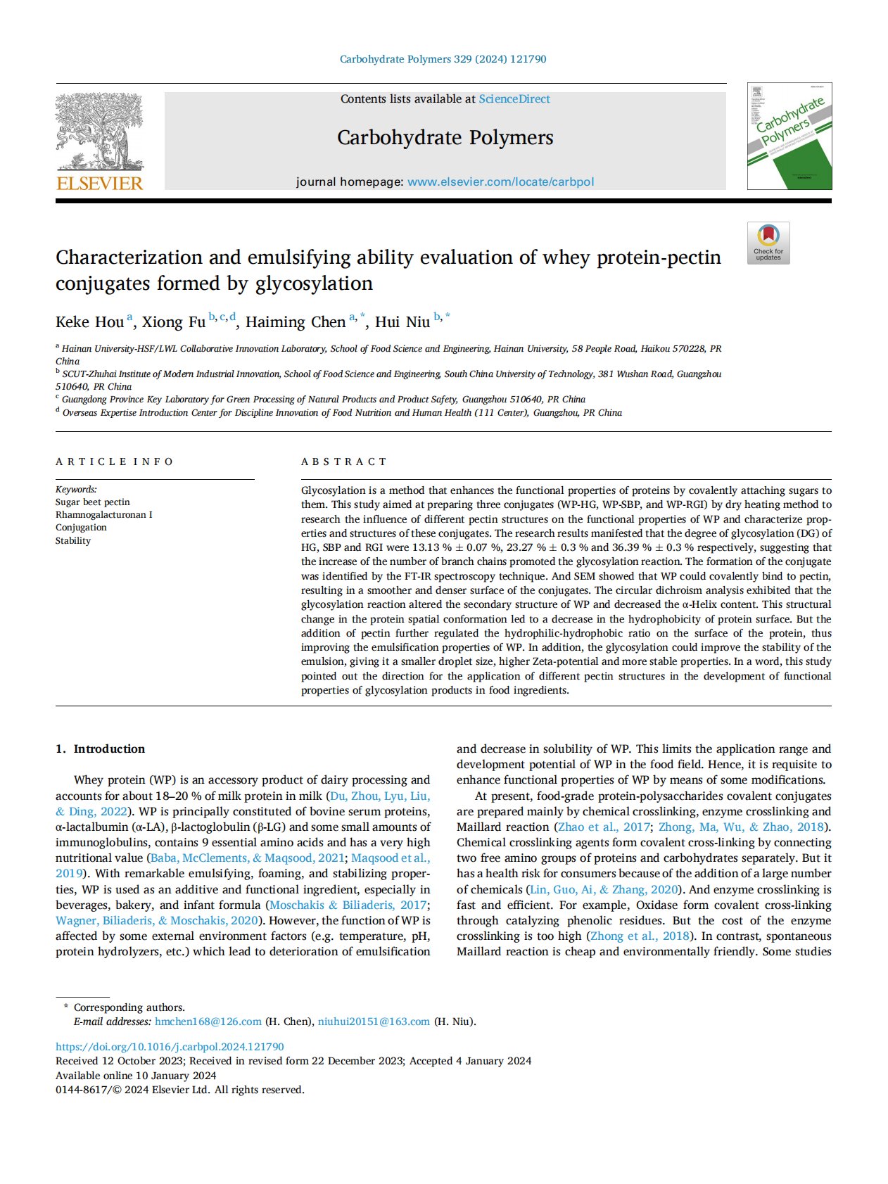 Characterization and emulsifying ability evaluation of whey protein-pectin conjugates formed by glycosylation.pdf