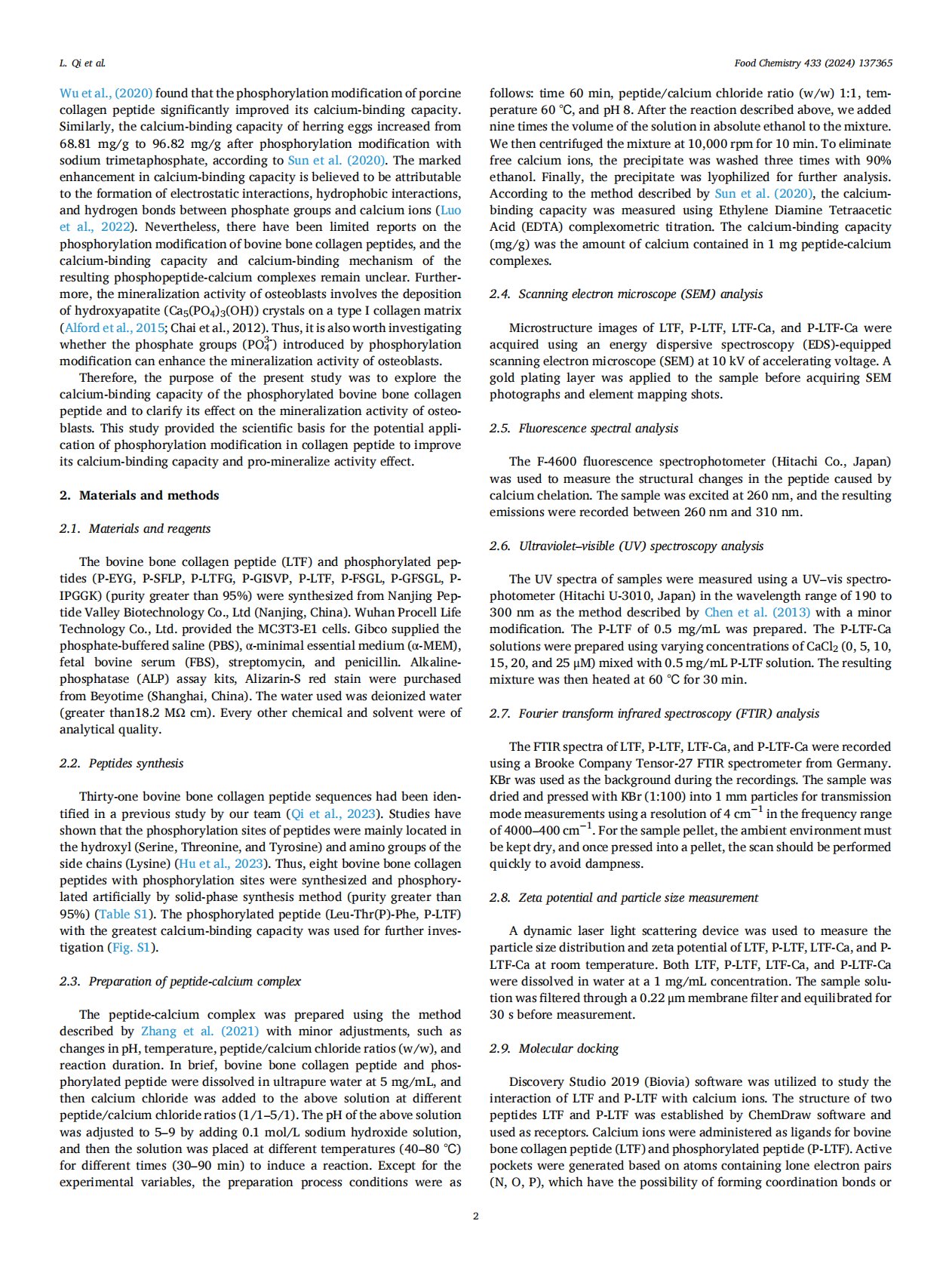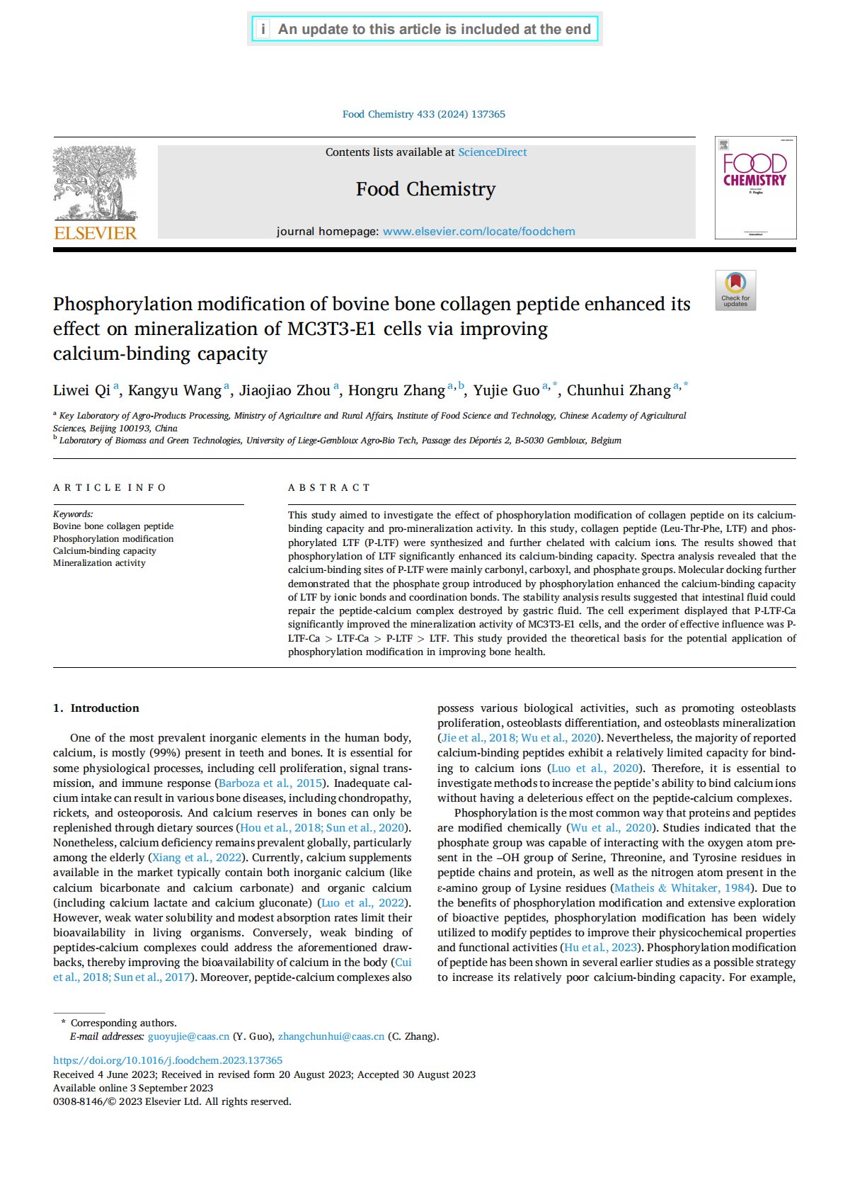Phosphorylation modification of bovine bone collagen peptide enhanced its effect on mineralization of MC3T3-E1 cells via improving calcium-binding capacity