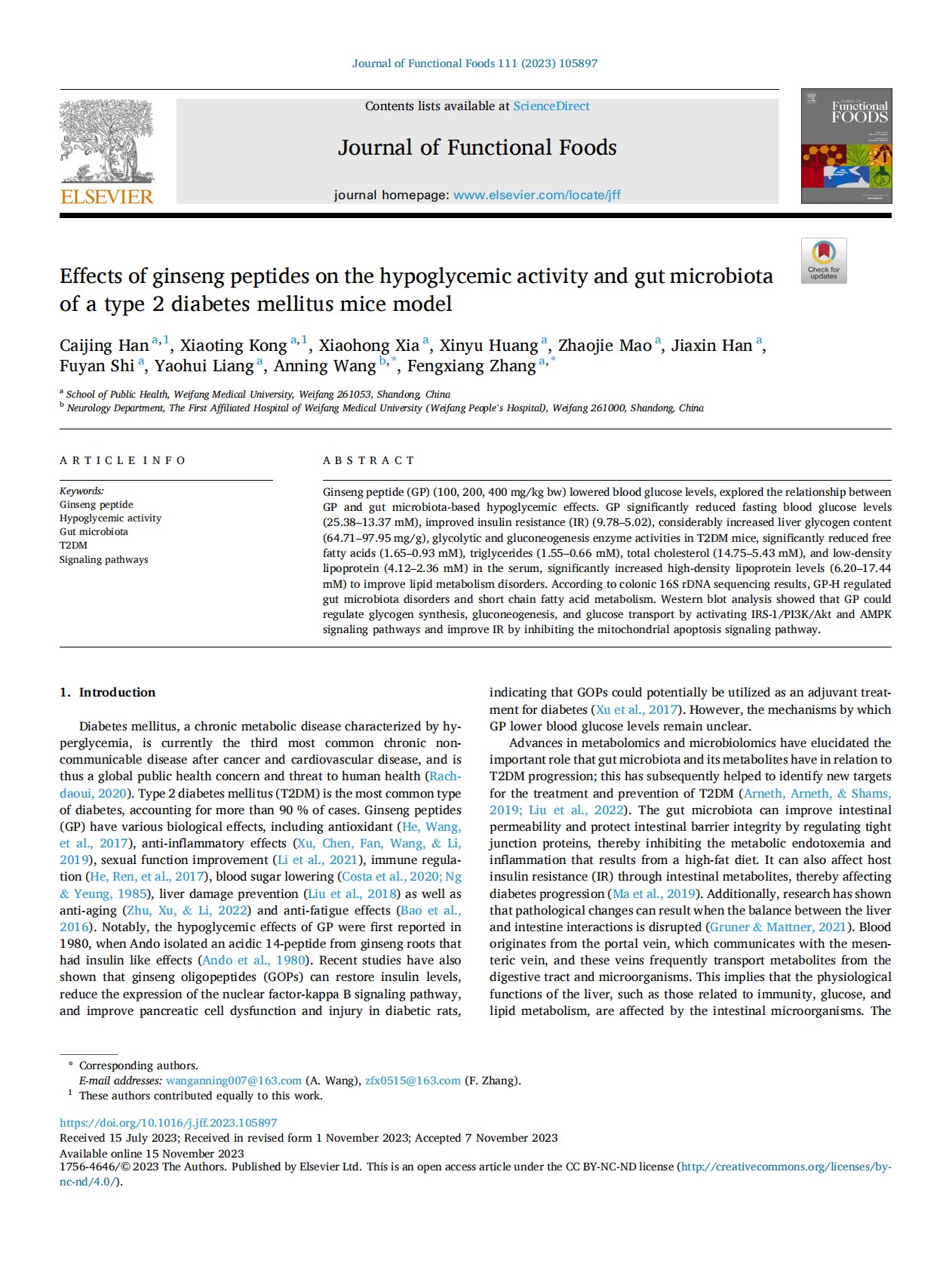 Effects of ginseng peptides on the hypoglycemic activity and gut microbiota of a type 2 diabetes mellitus mice model.pdf