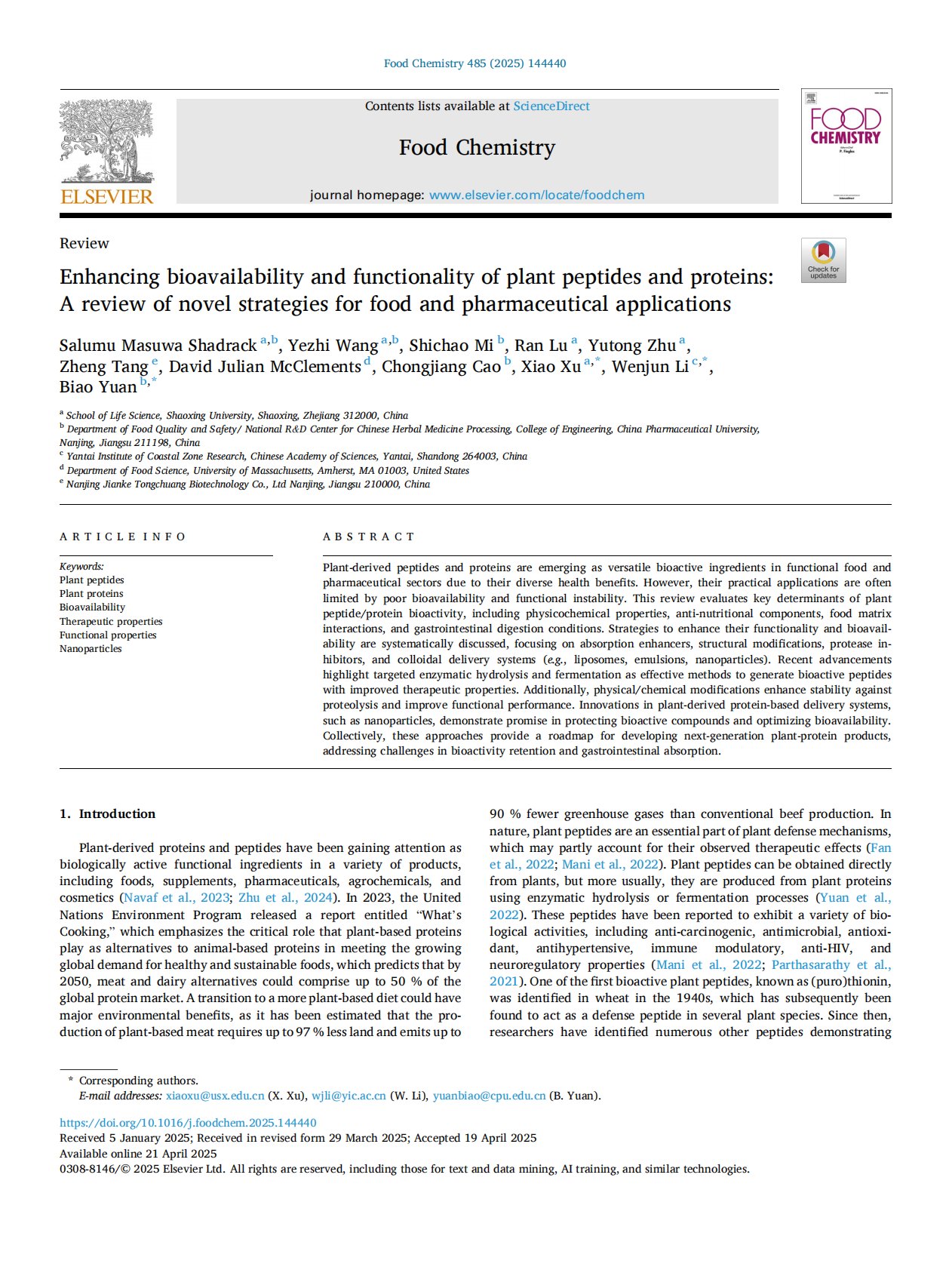 Enhancing bioavailability and functionality of plant peptides and proteins: A review of novel strategies for food and pharmaceutical applications