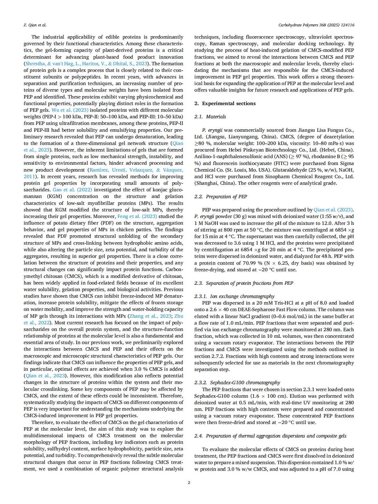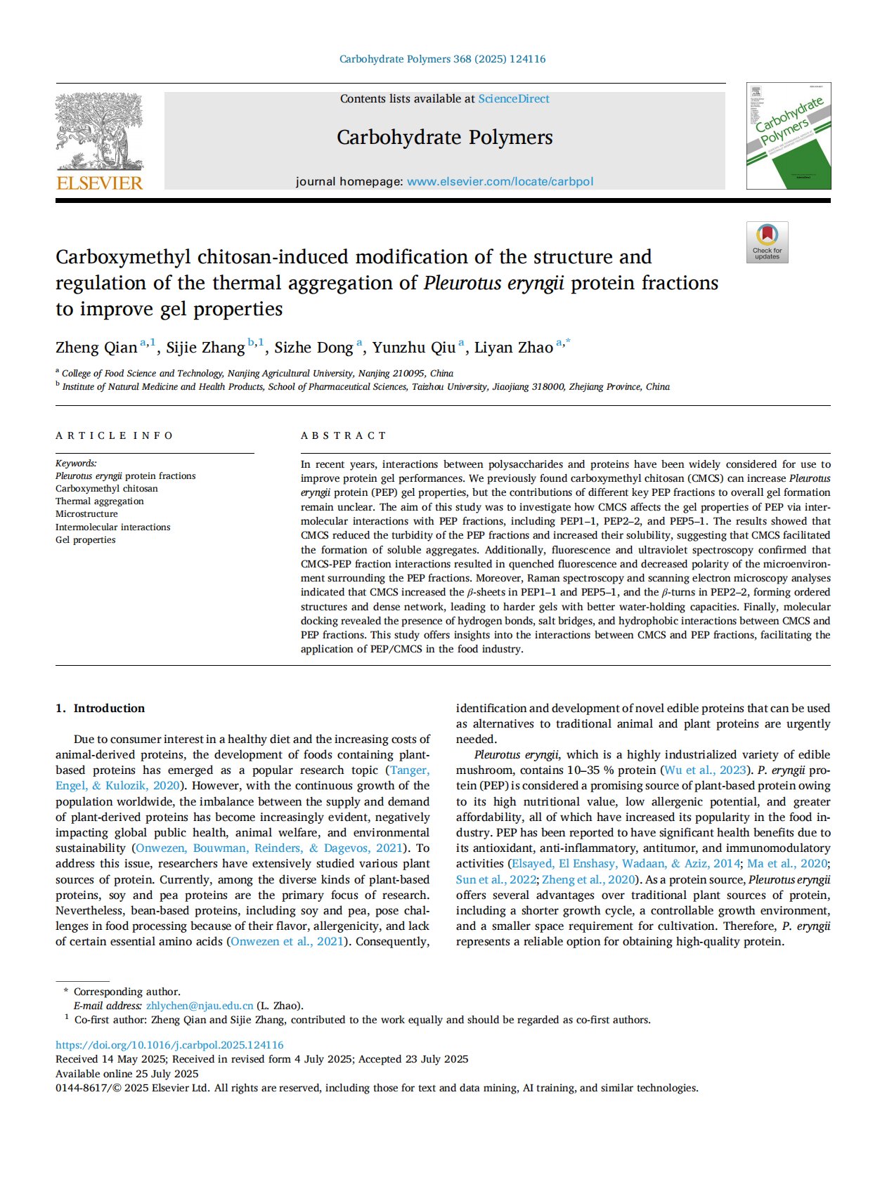 Carboxymethyl chitosan-induced modification of the structure and regulation of the thermal aggregation of Pleurotus eryngii protein fractions to improve gel properties