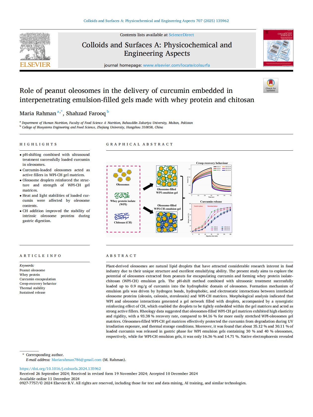 Role of peanut oleosomes in the delivery of curcuminembedded in interpenetrating emulsion-filled gels made withwhey protein and chitosan