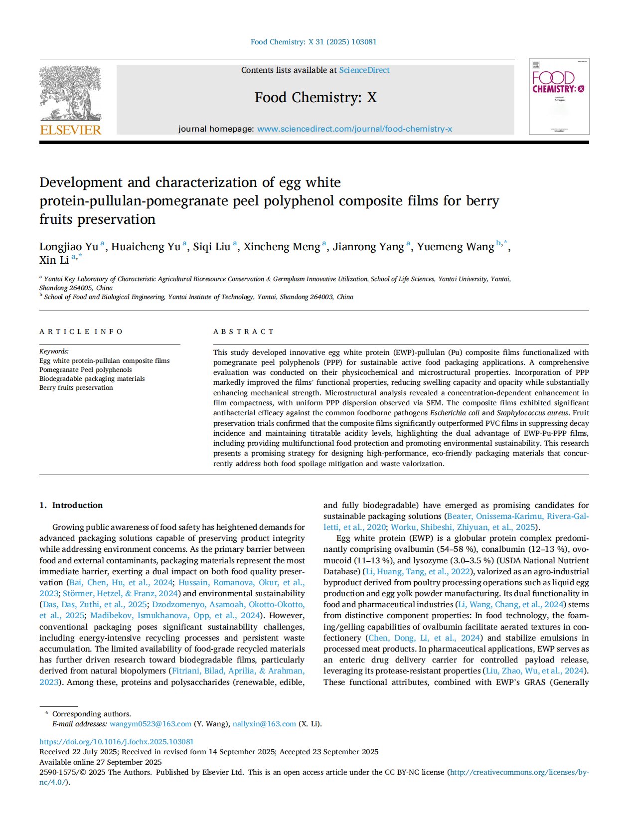 Development and characterization of egg white protein-pullulan-pomegranate peel polyphenol composite films for berry fruits preservation