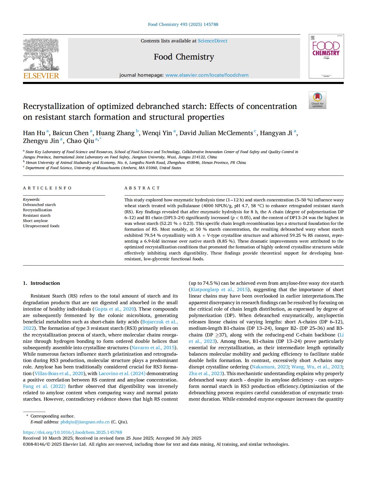 Recrystallization of optimized debranched starch Effects of concentration on resistant starch formation and structural properties