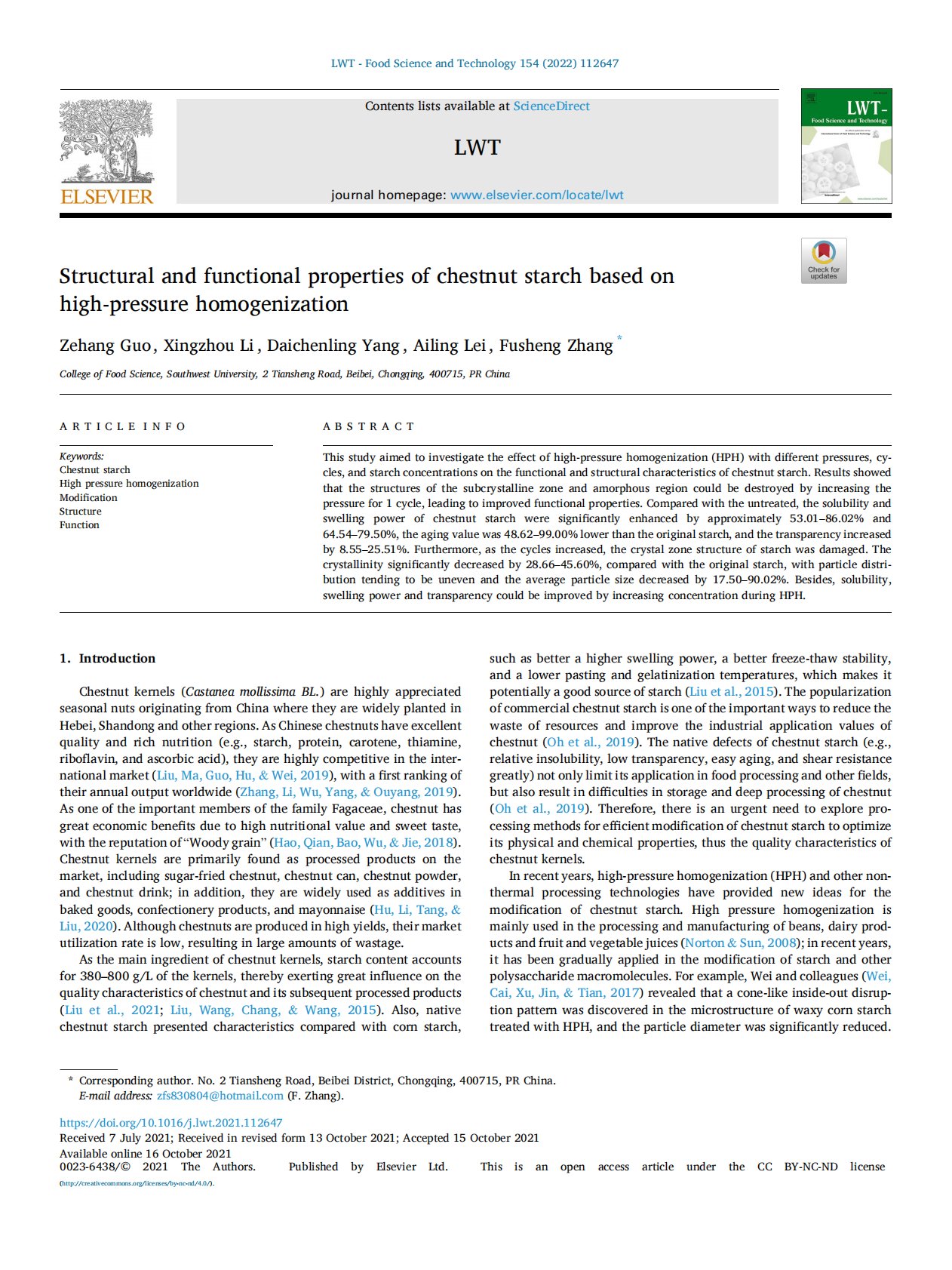 Structural and functional properties of chestnut starch based on high-pressure homogenization.pdf