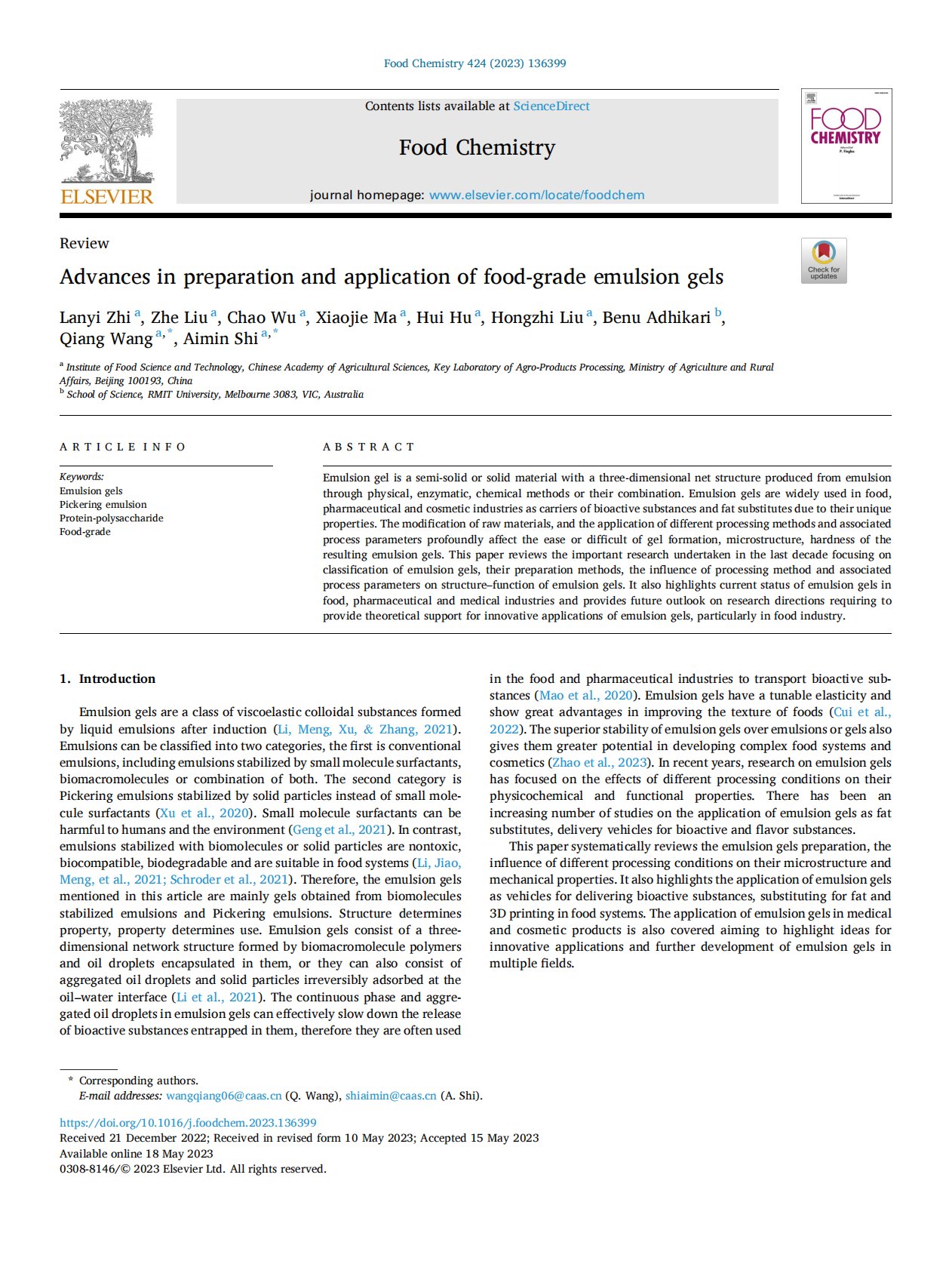 Advances in preparation and application of food-gradeemulsion gels.pdf