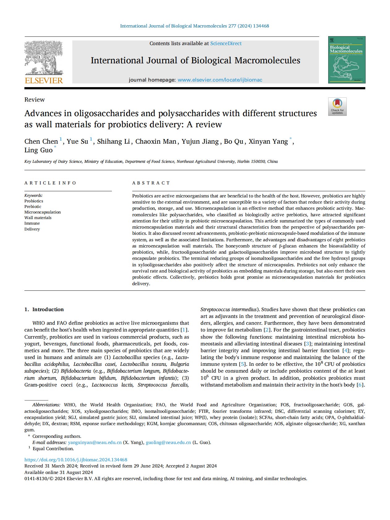 Advances in oligosaccharides and polysaccharides with different structures as wall materials for probiotics delivery A review