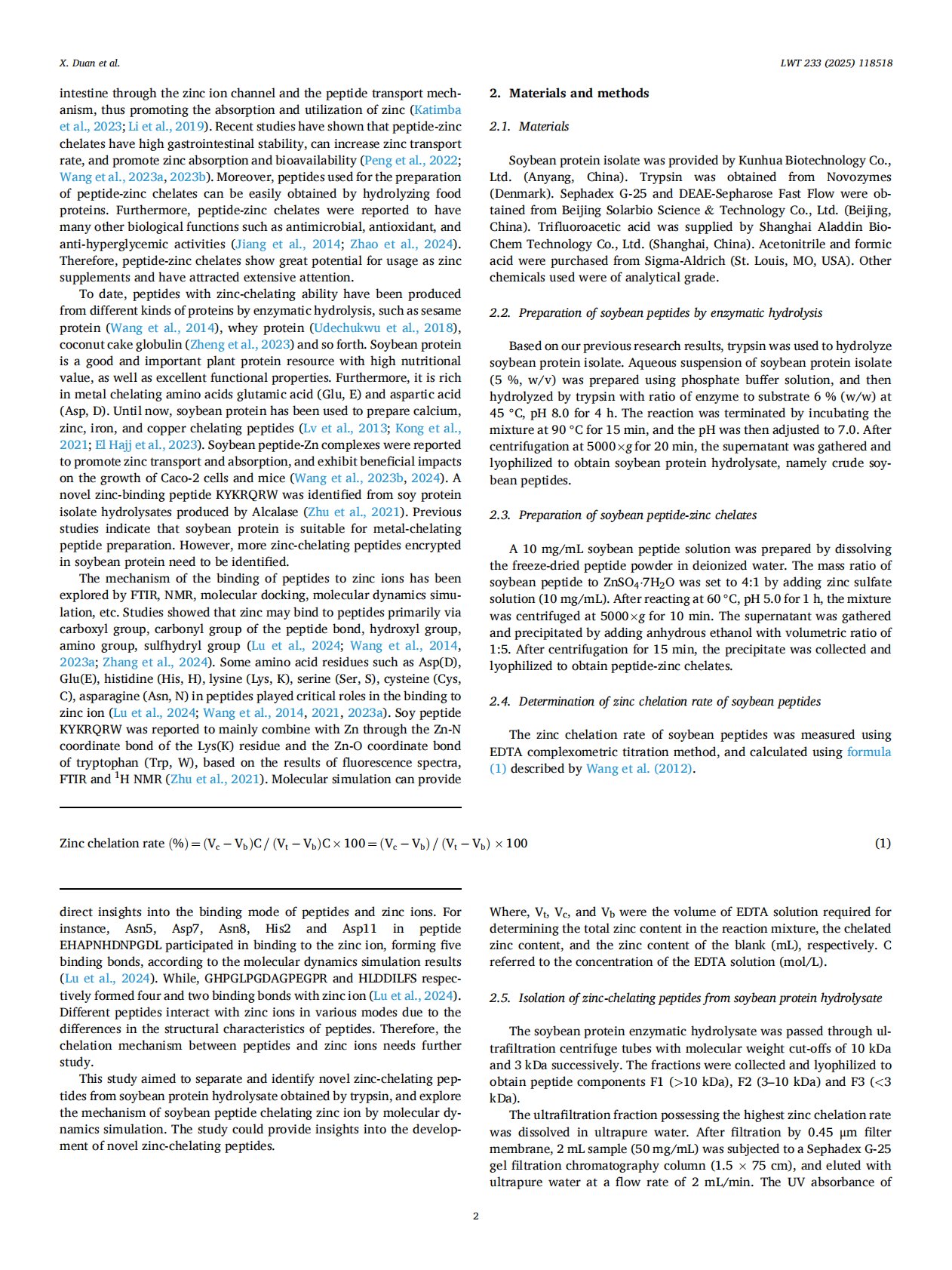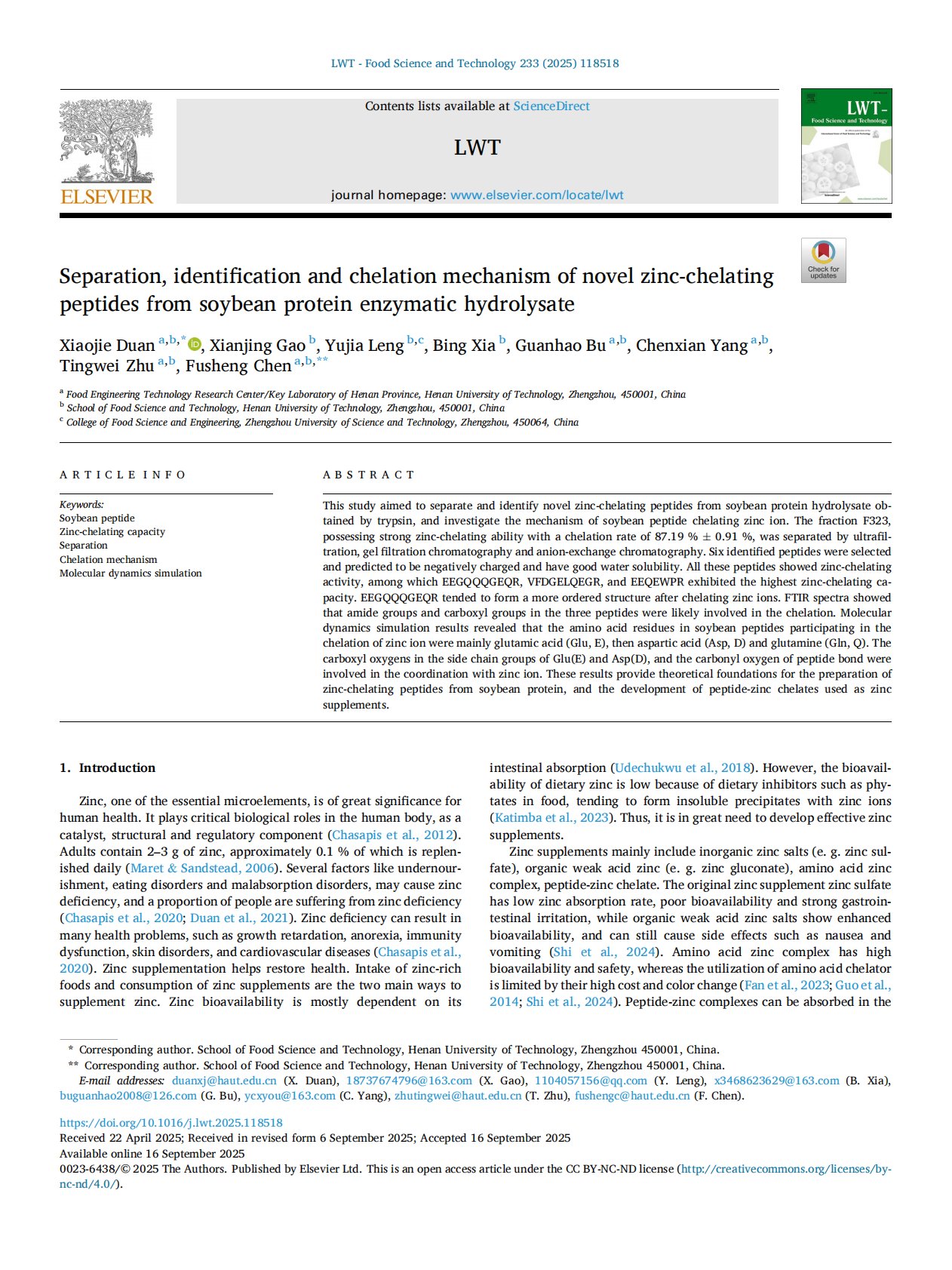Separation, identification and chelation mechanism of novel zinc-chelating peptides from soybean protein enzymatic hydrolysate