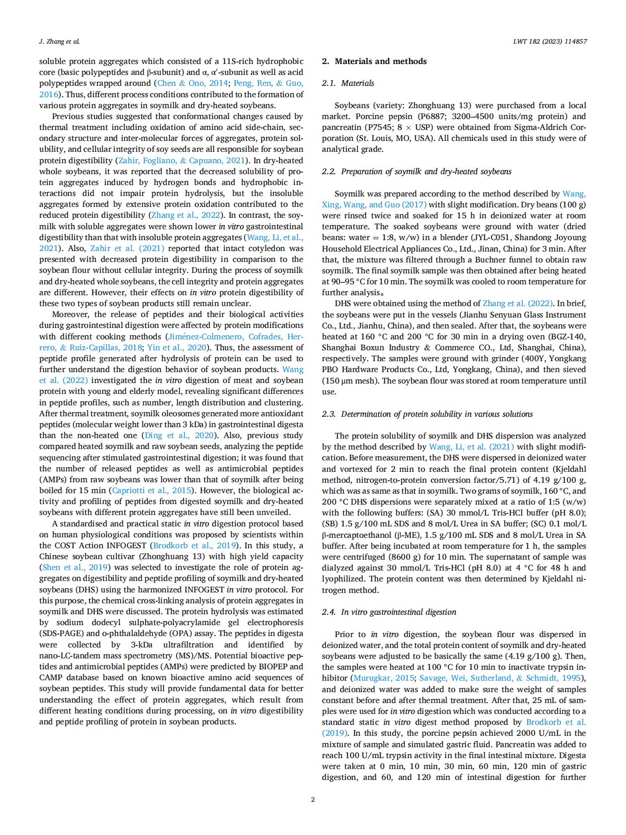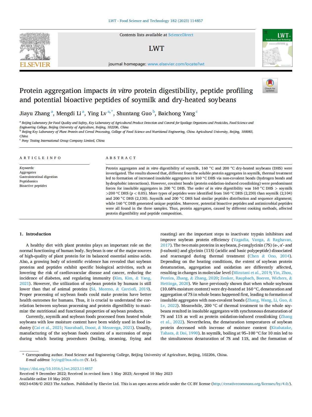 Protein aggregation impacts in vitro protein digestibility, peptide profiling and potential bioactive peptides of soymilk and dry-heated soybeans