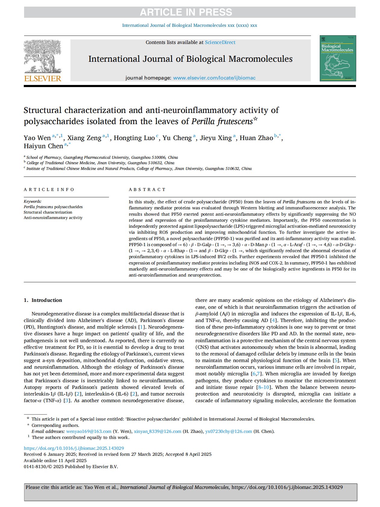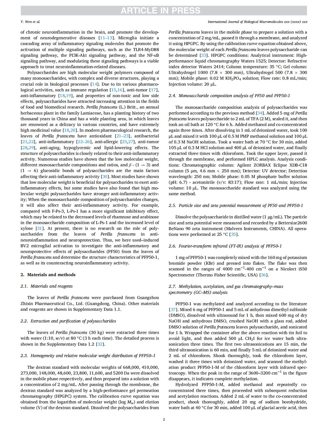 Structural characterization and anti-neuroinflammatory activity of polysaccharides isolated from the leaves of Perilla frutescens