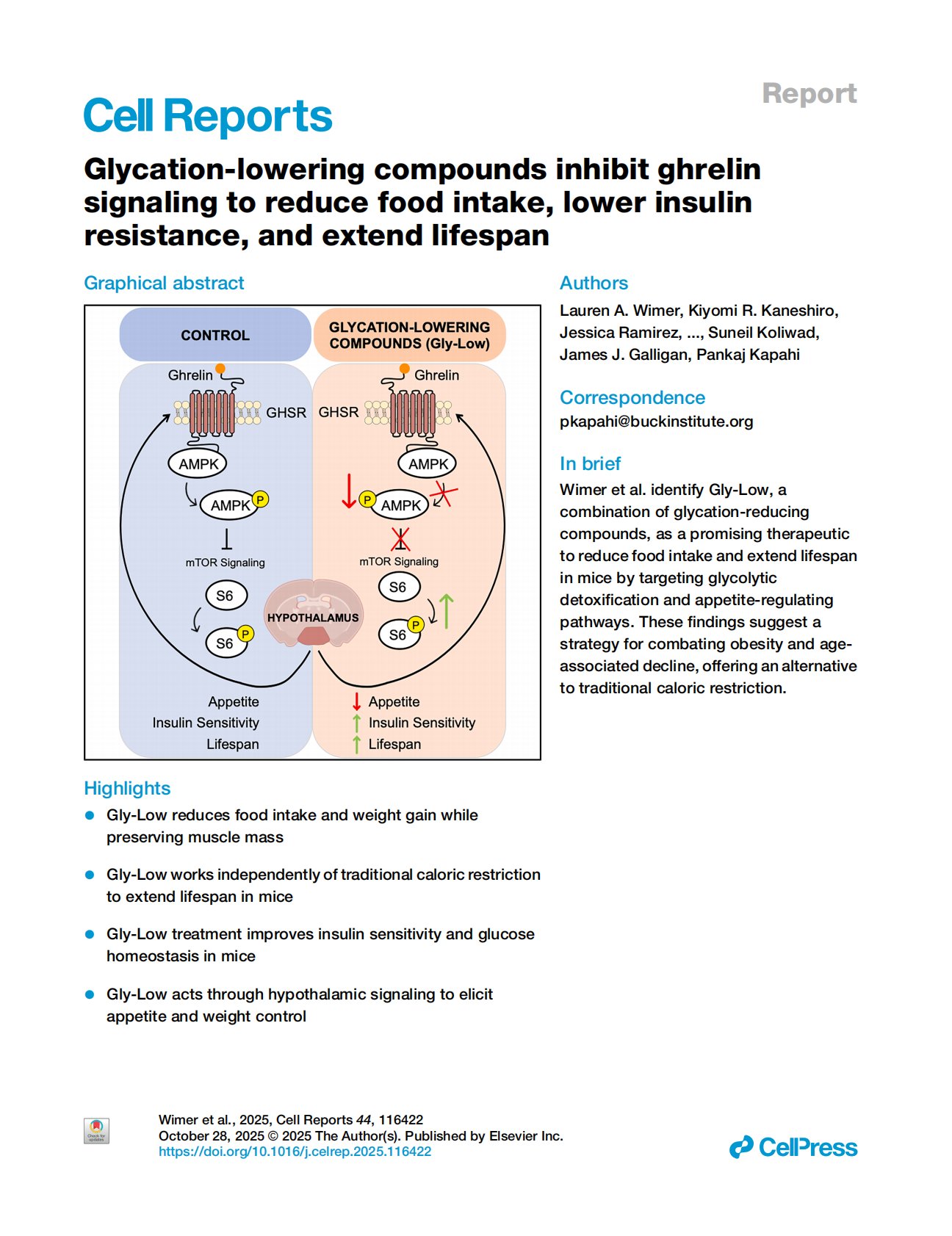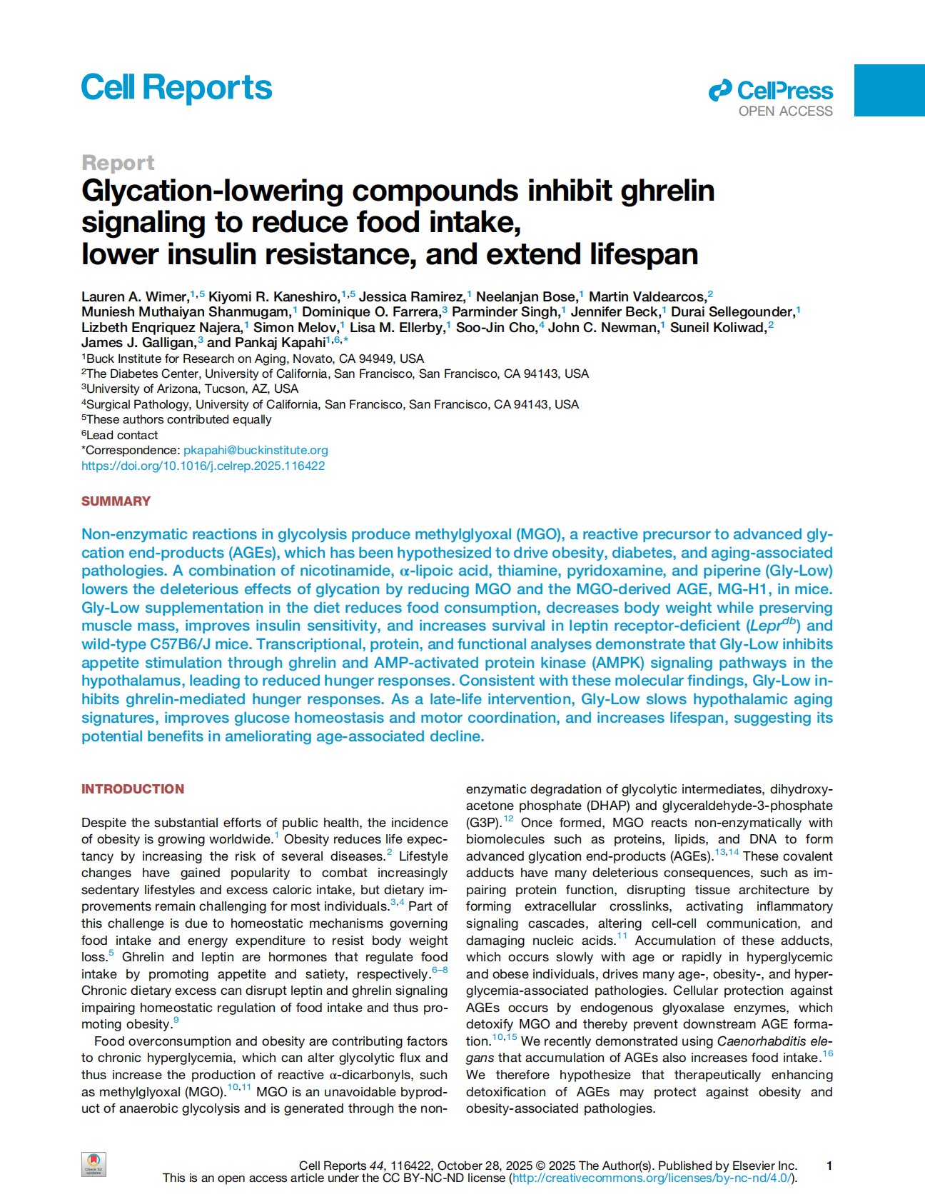 Glycation-lowering compounds inhibit ghrelin signaling to reduce food intake,lower insulin resistance,and extend lifespan