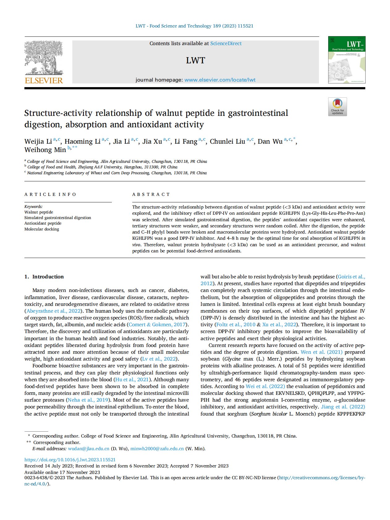 Structure-activity relationship of walnut peptide in gastrointestinal digestion, absorption and antioxidant activity.pdf
