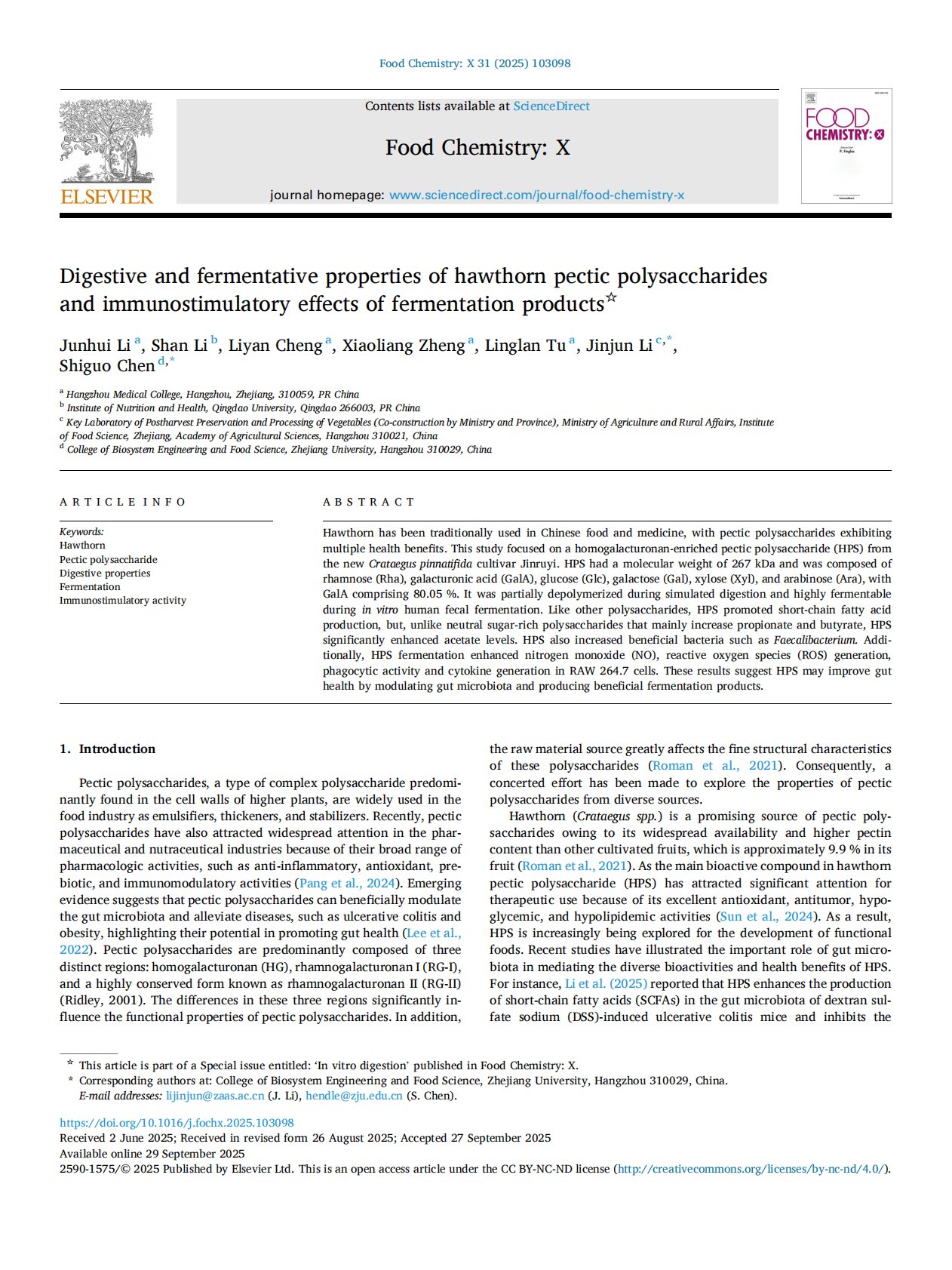 Digestive and fermentative properties of hawthorn pectic polysaccharides and immunostimulatory effects of fermentation products