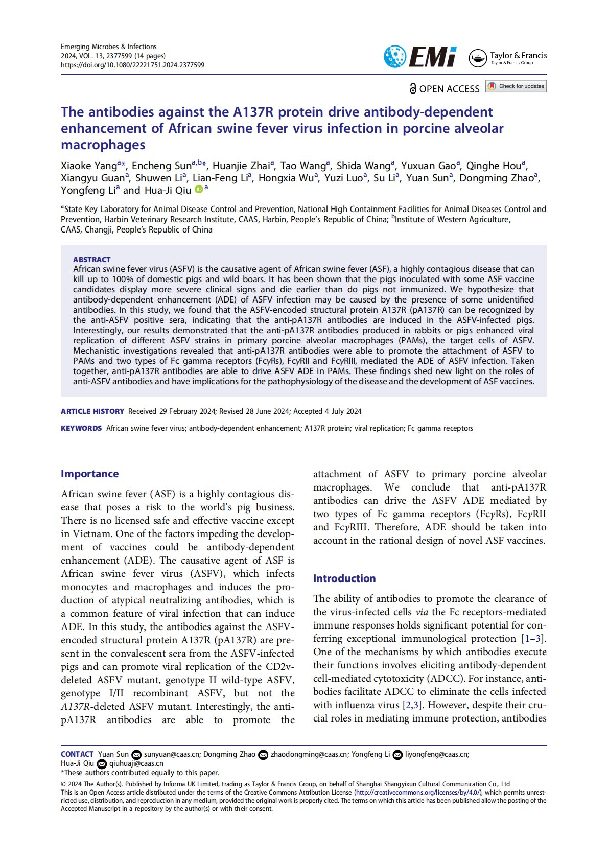 The antibodies against the A137R protein drive antibody-dependent enhancement of African swine fever virus infection in porcine alveolar macrophages