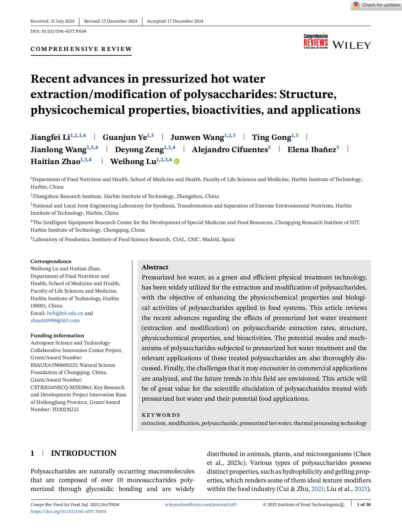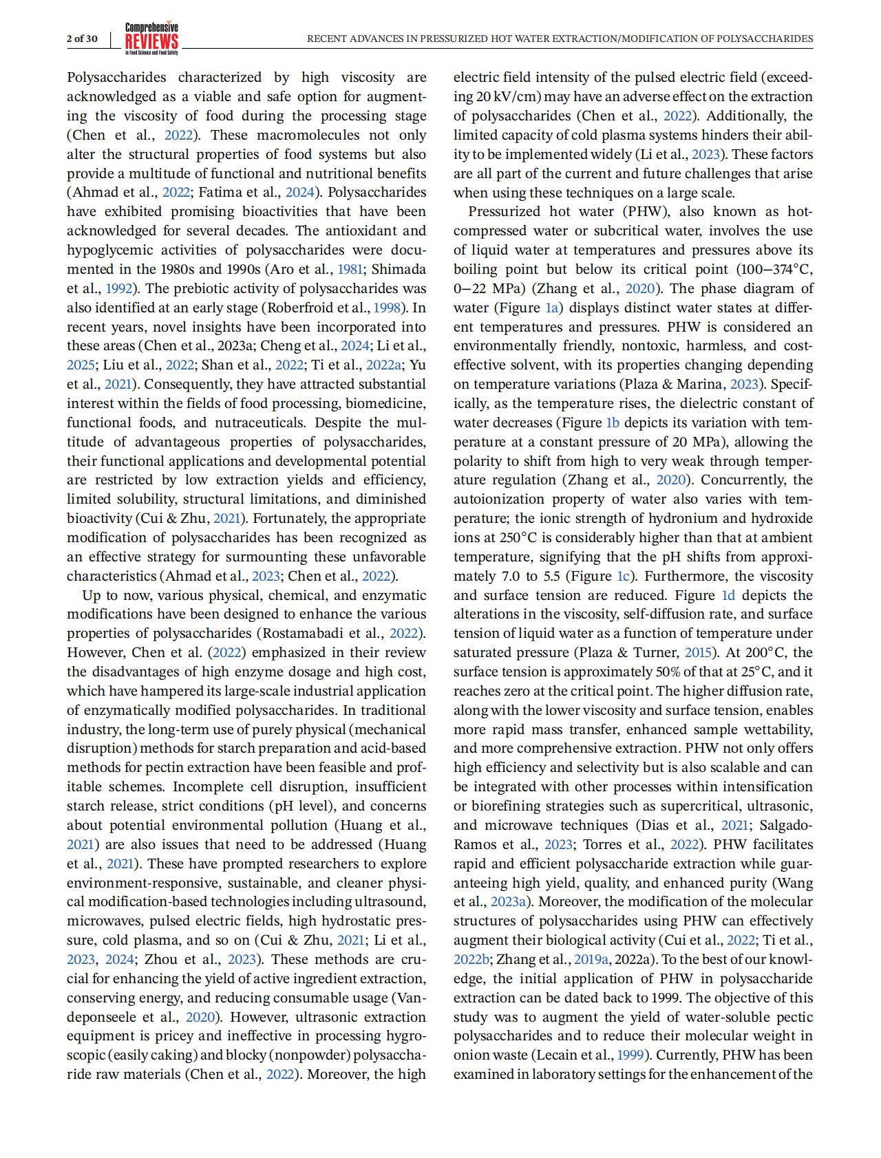 Recent advances in pressurized hot water extractionmodification of polysaccharidesStructure,physicochemical properties, bioactivities, and applications