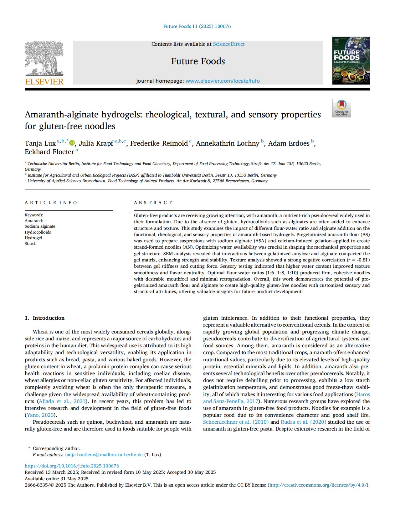 Amaranth-alginate hydrogels rheological, textural, and sensory properties for gluten-free noodles