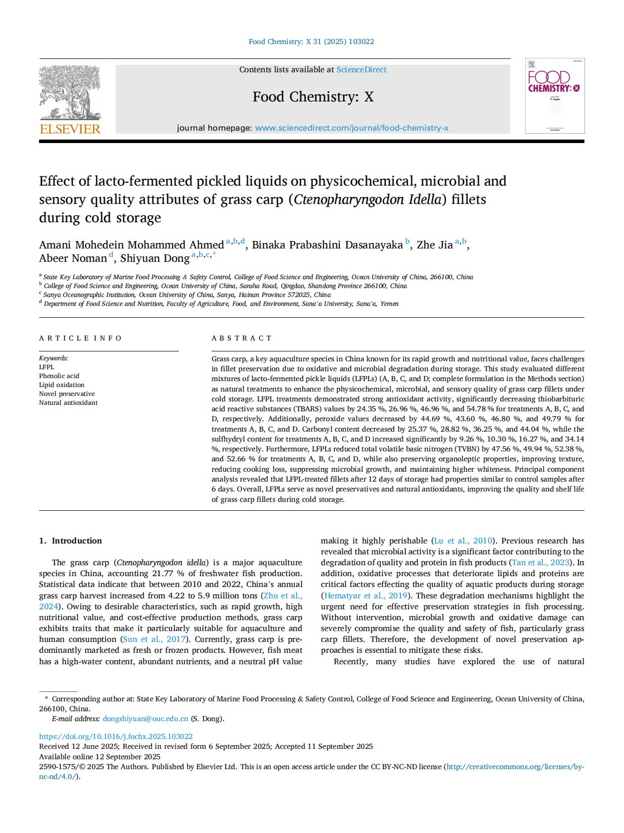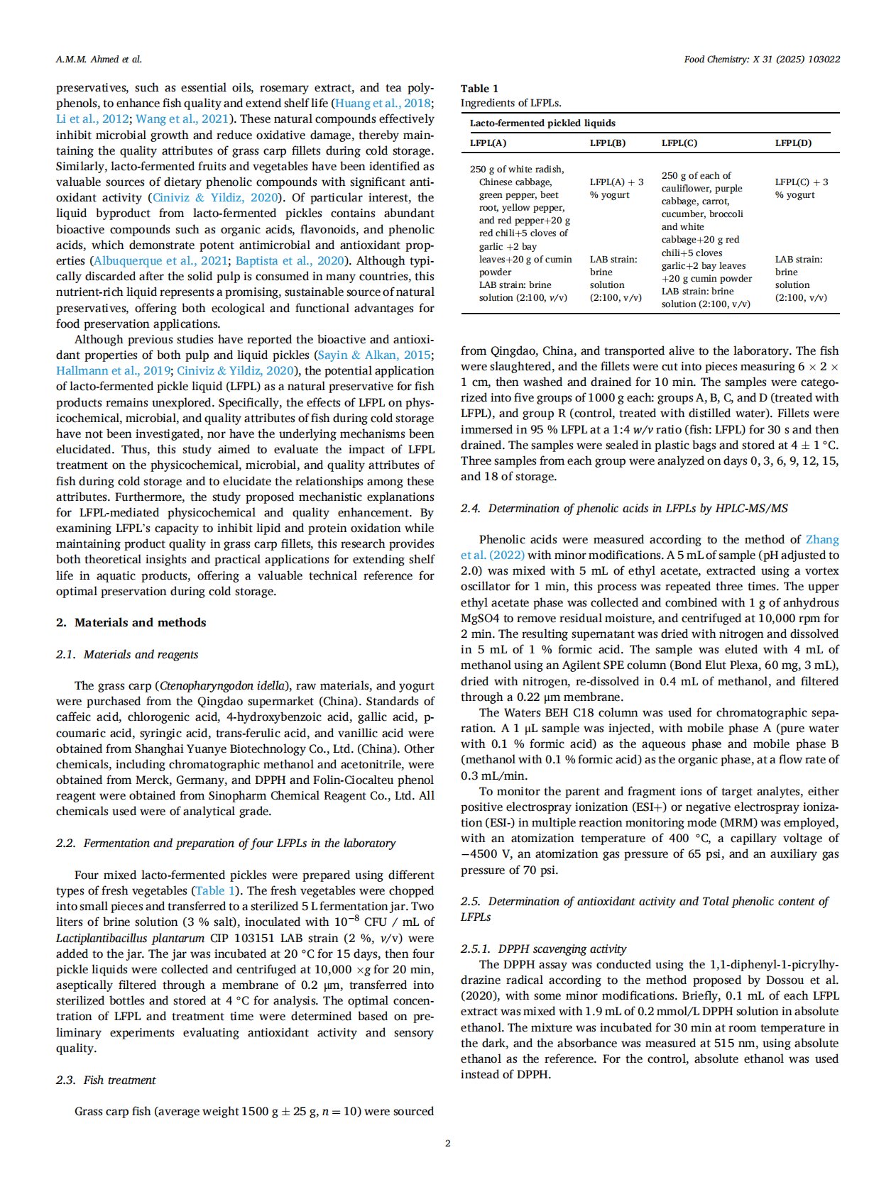 Effect of lacto-fermented pickled liquids on physicochemical, microbial and sensory quality attributes of grass carp (Ctenopharyngodon Idella) fillets during cold storage