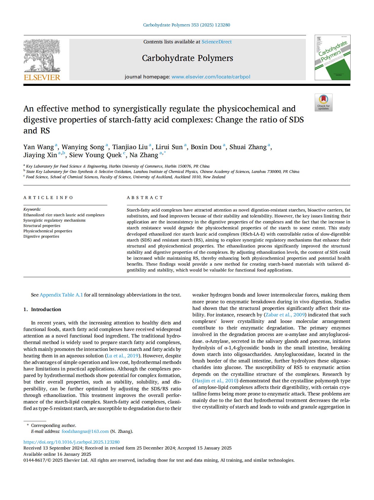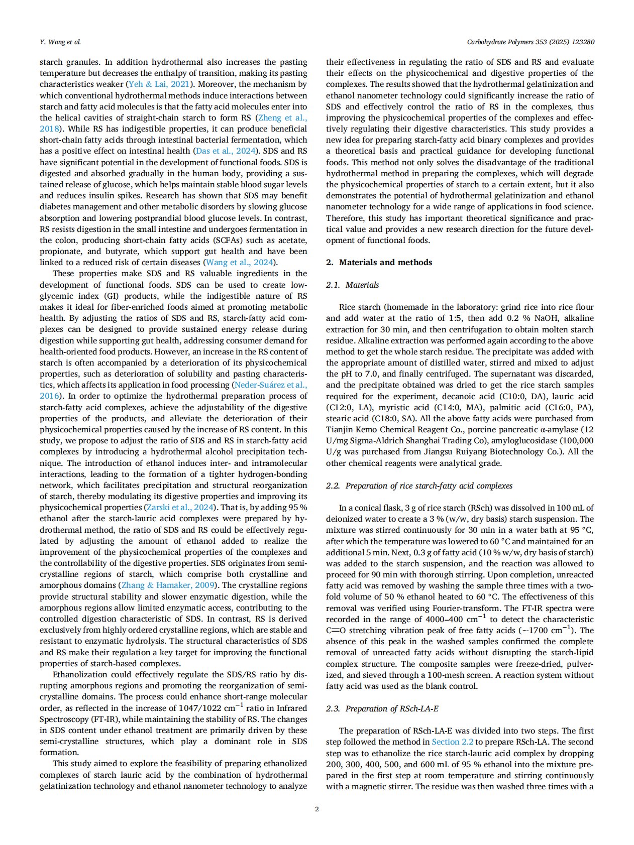 An effective method to synergistically regulate the physicochemical and digestive properties of starch-fatty acid complexes Change the ratio of SDS and RS