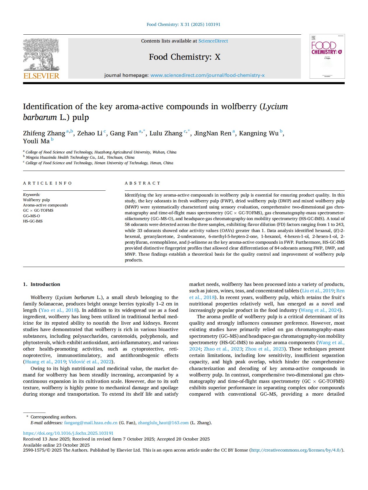 Identiffcation of the key aroma-active compounds in wolfberry (Lycium barbarum L.) pulp
