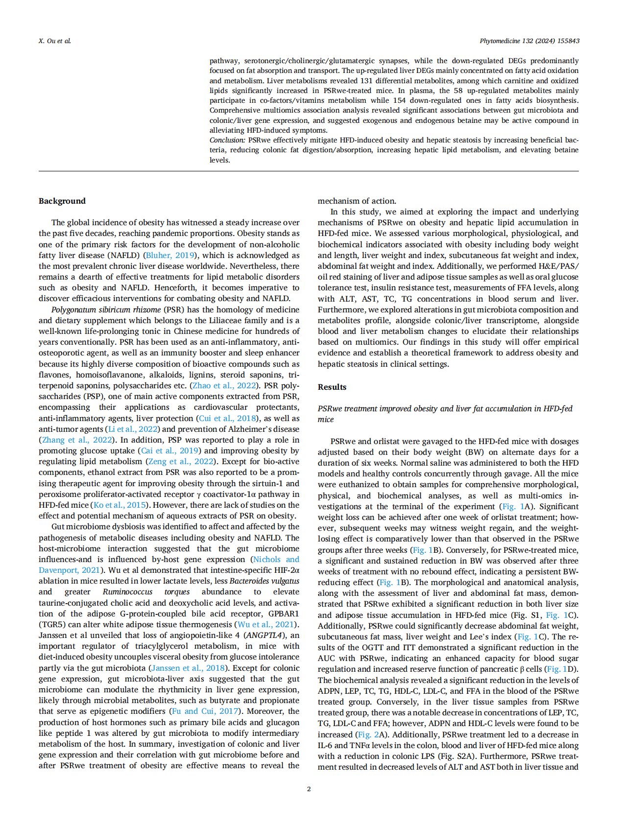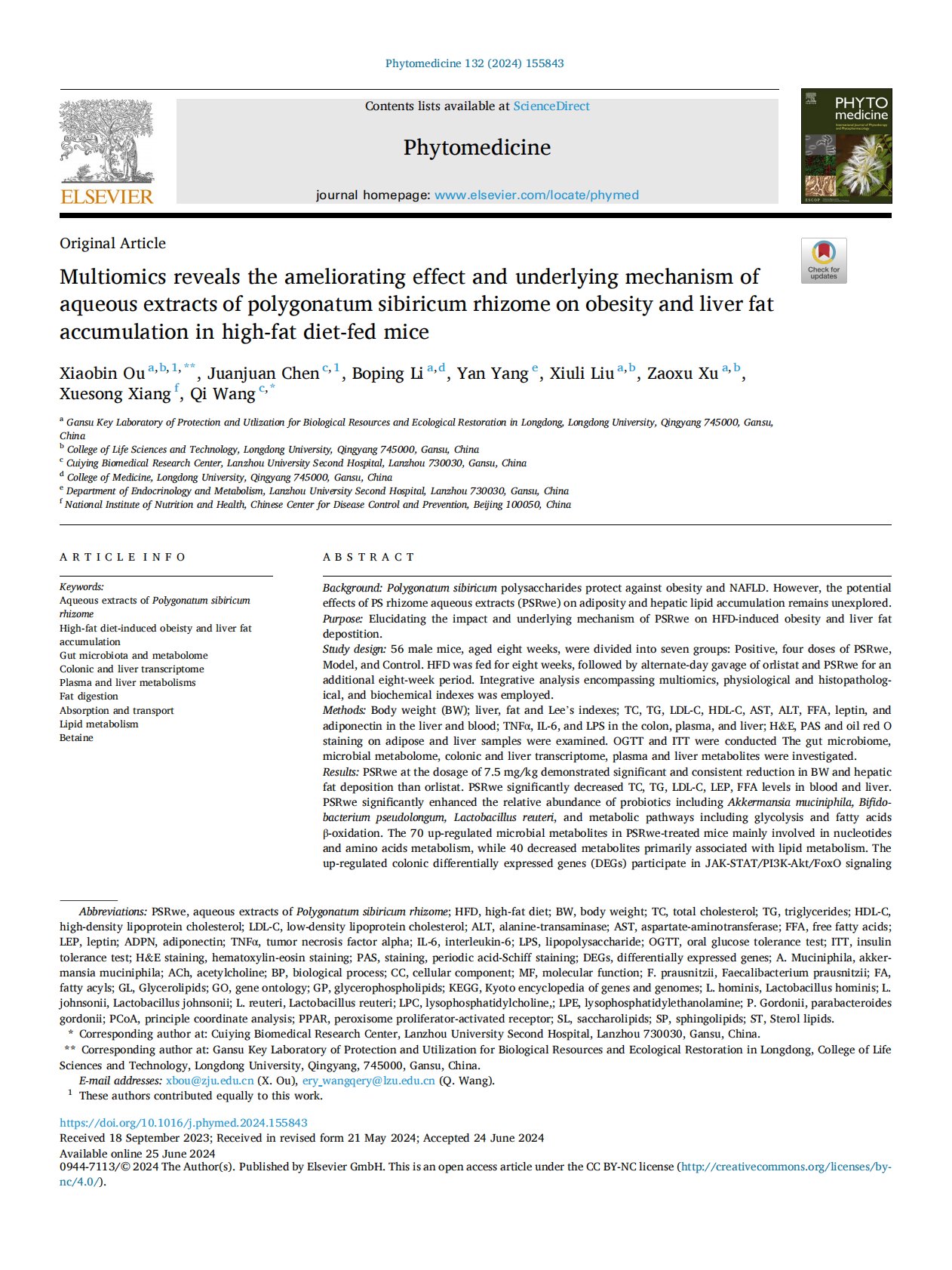 Multiomics reveals the ameliorating effect and underlying mechanism of aqueous extracts of polygonatum sibiricum rhizome on obesity and liver fat accumulation in high-fat diet-fed mice