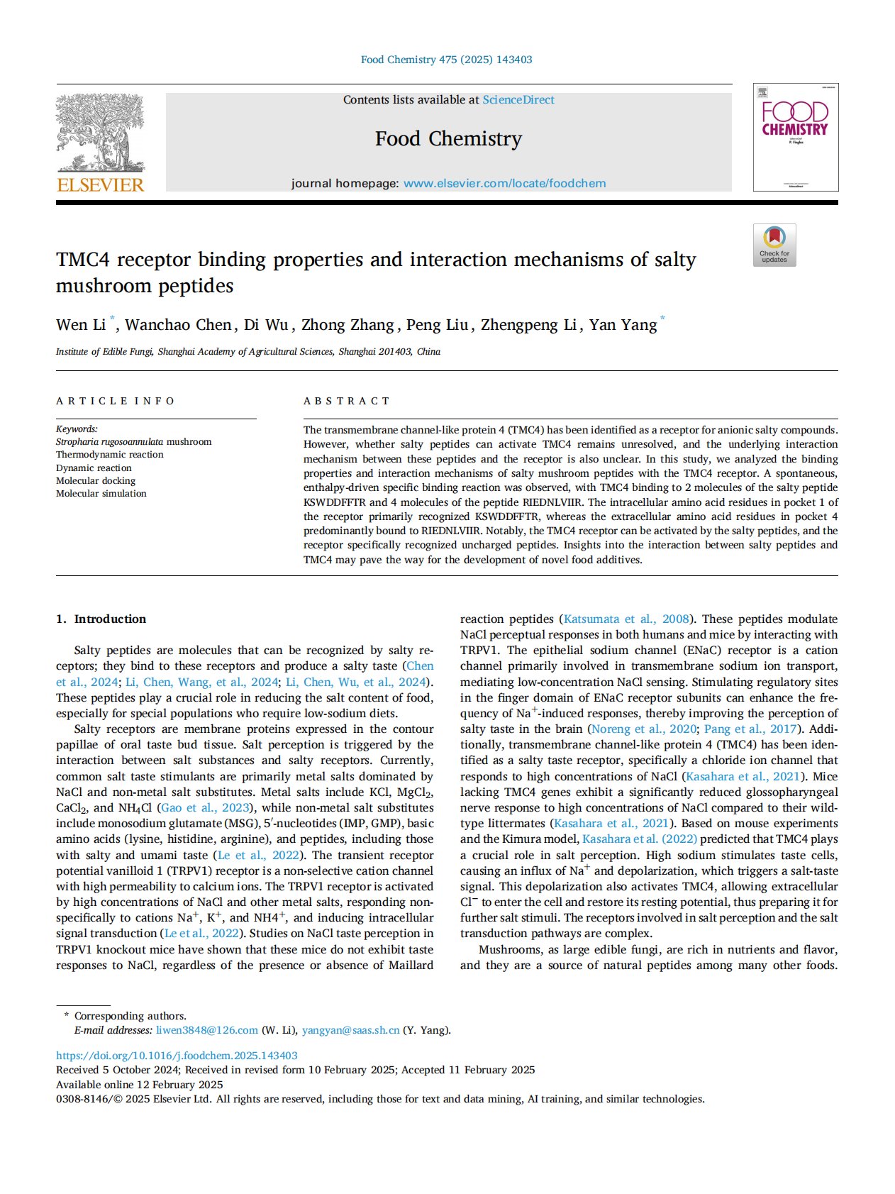 TMC4 receptor binding properties and interaction mechanisms of salty mushroom peptides.pdf
