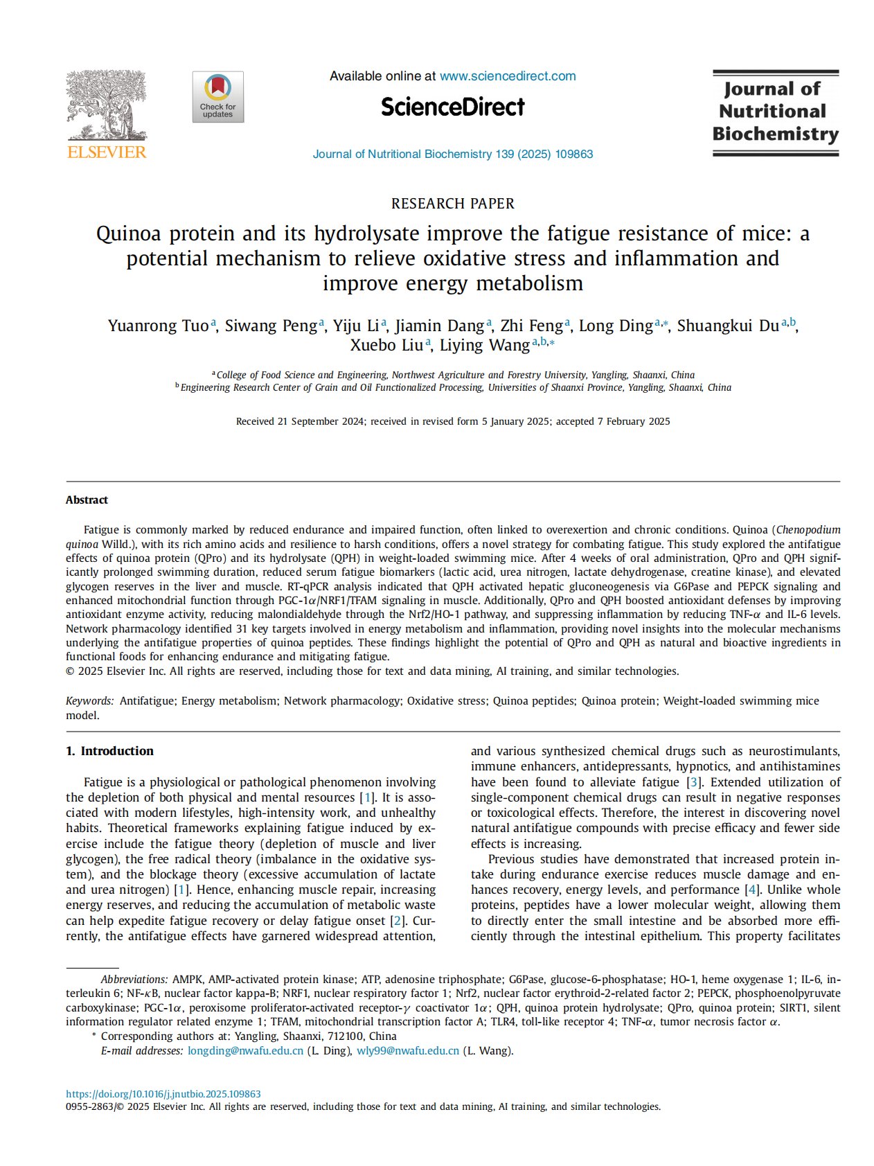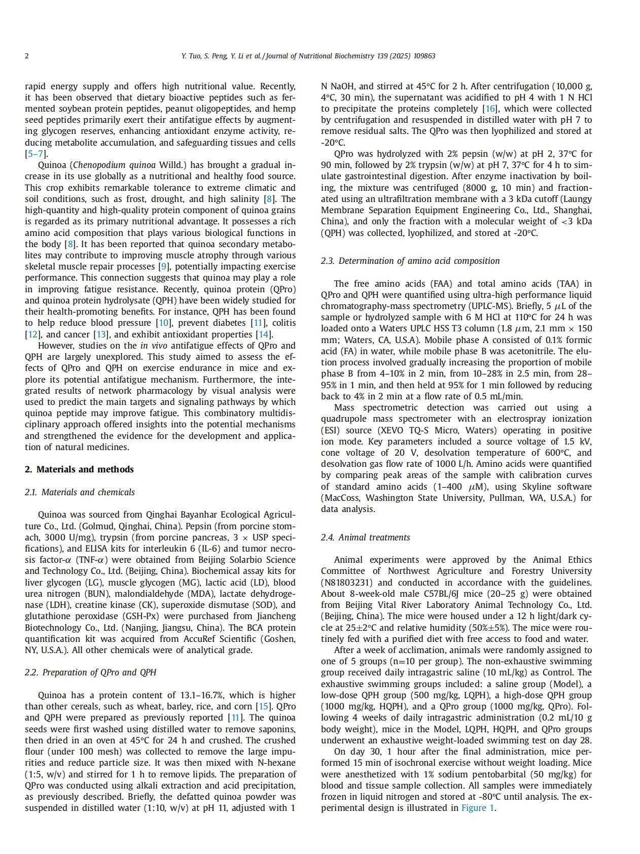 Quinoa protein and its hydrolysate improve the fatigue resistance of mice: a potential mechanism to relieve oxidative stress and inflammation and improve energy metabolism