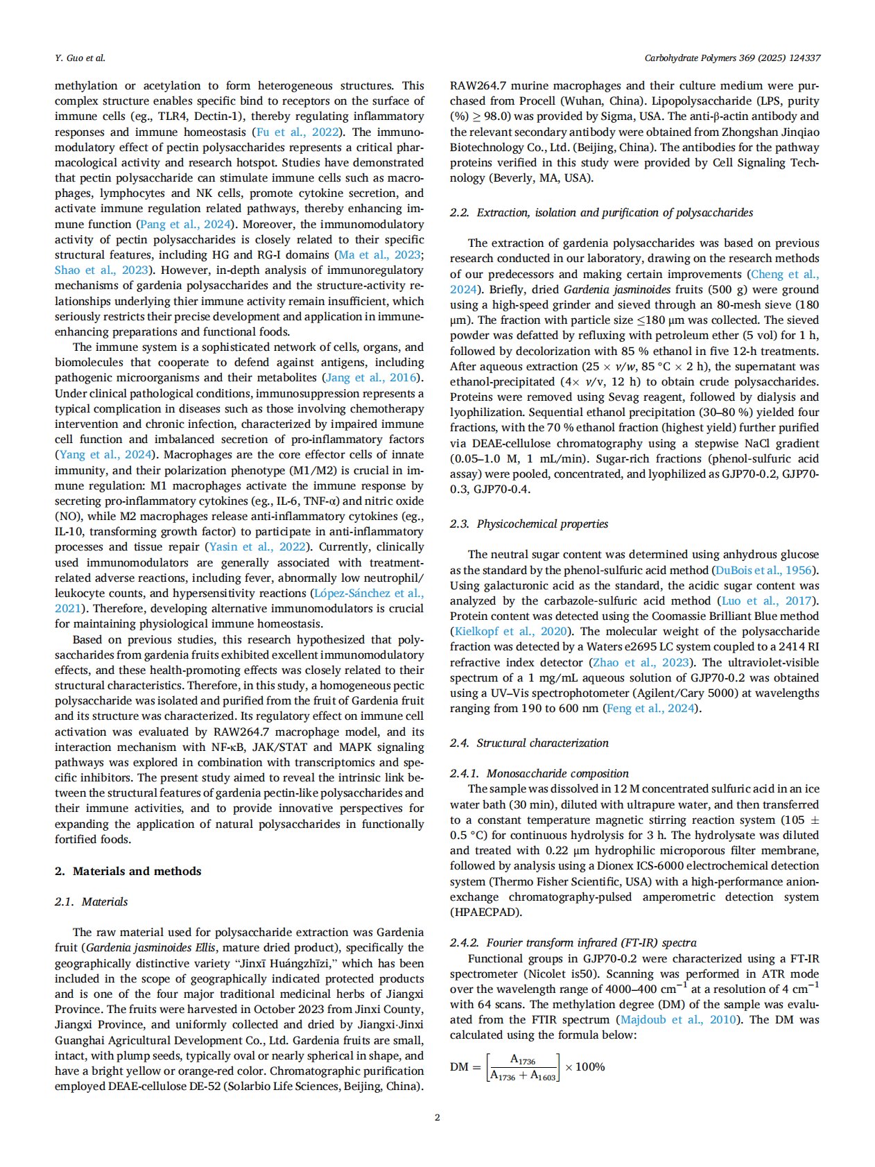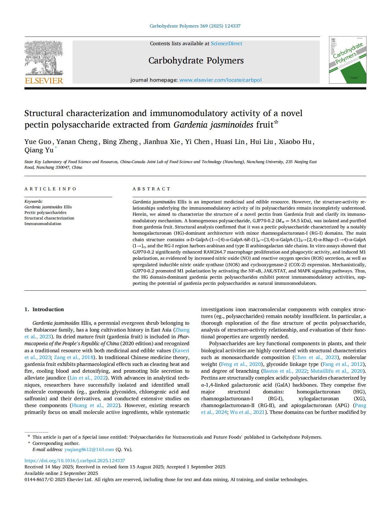 Structural characterization and immunomodulatory activity of a novel pectin polysaccharide extracted from Gardenia jasminoides fruit