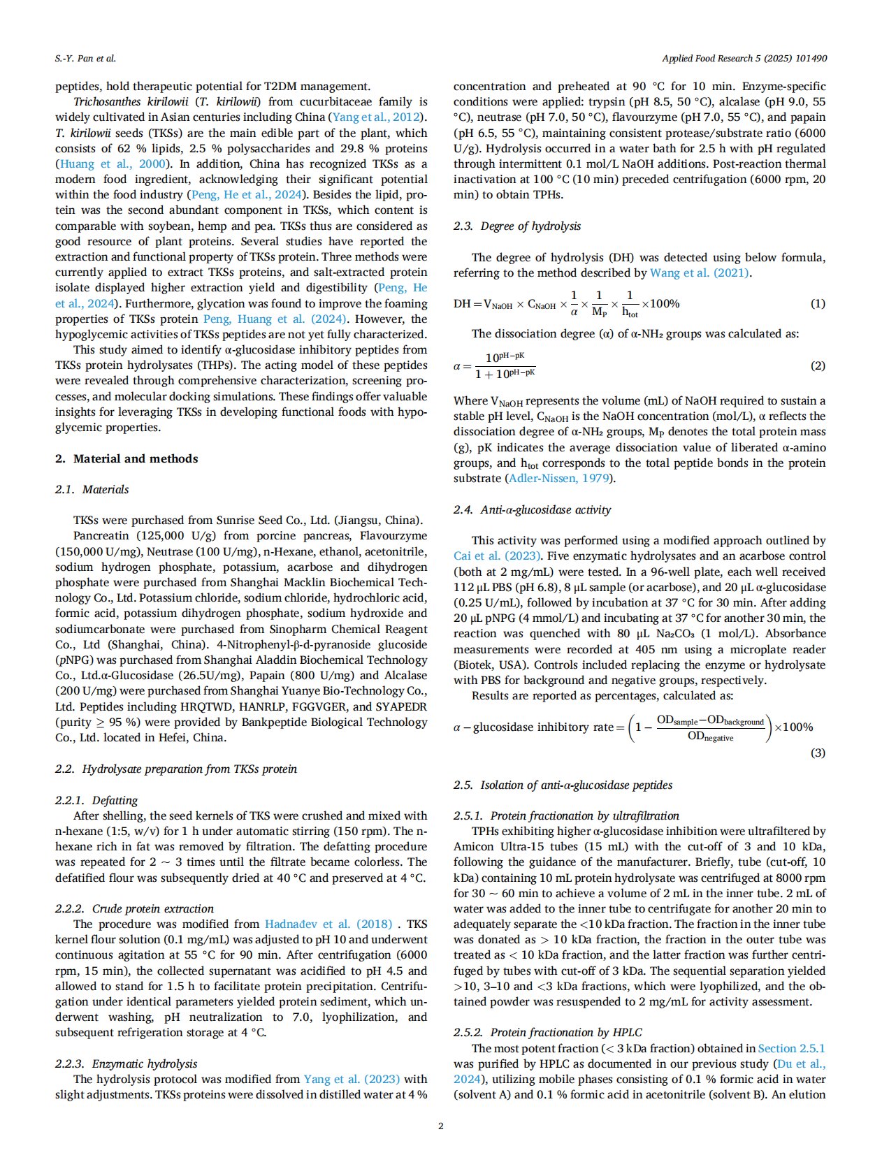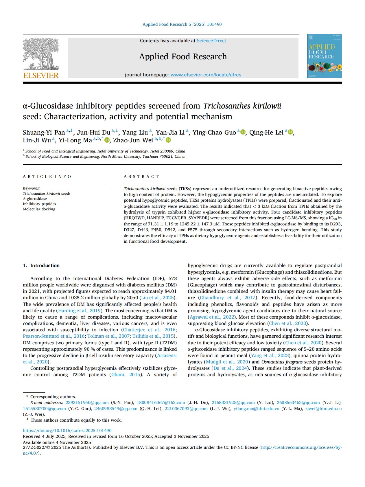 α-Glucosidase inhibitory peptides screened from Trichosanthes kirilowii seed:Characterization, activity and potential mechanism