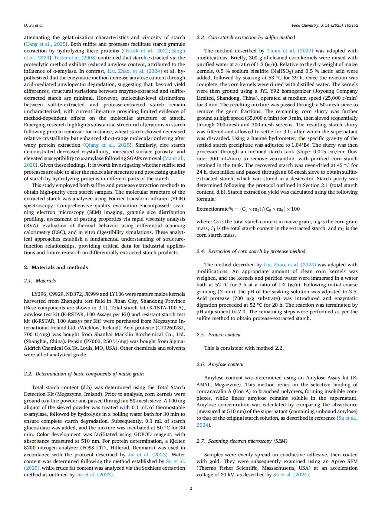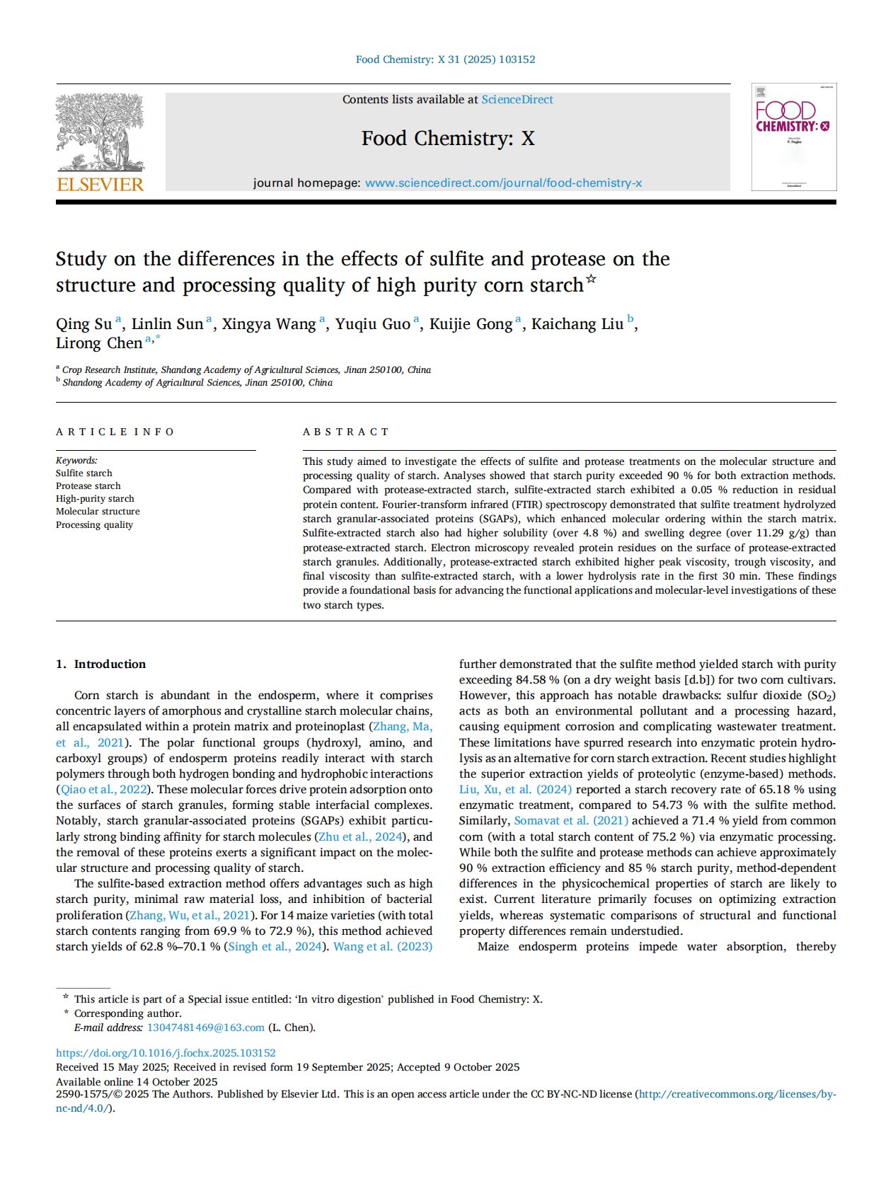 Study on the differences in the effects of sulfite and protease on the structure and processing quality of high purity corn starch