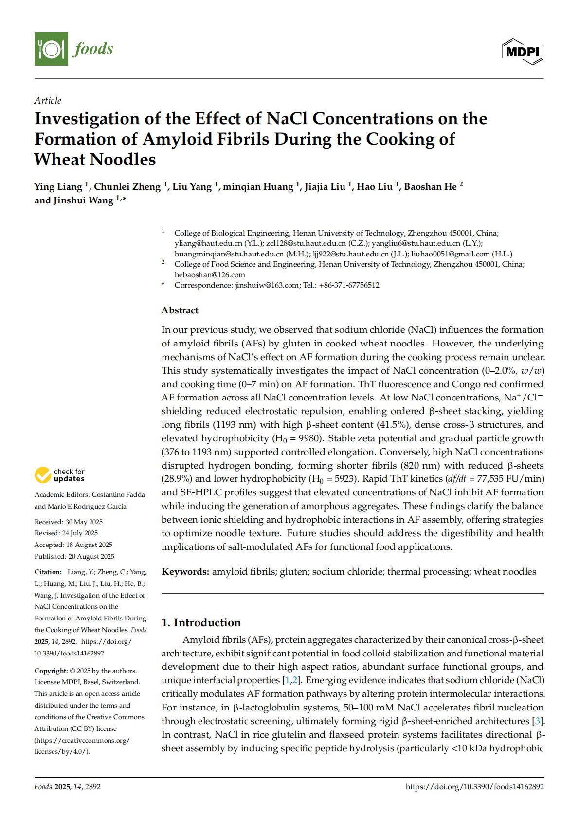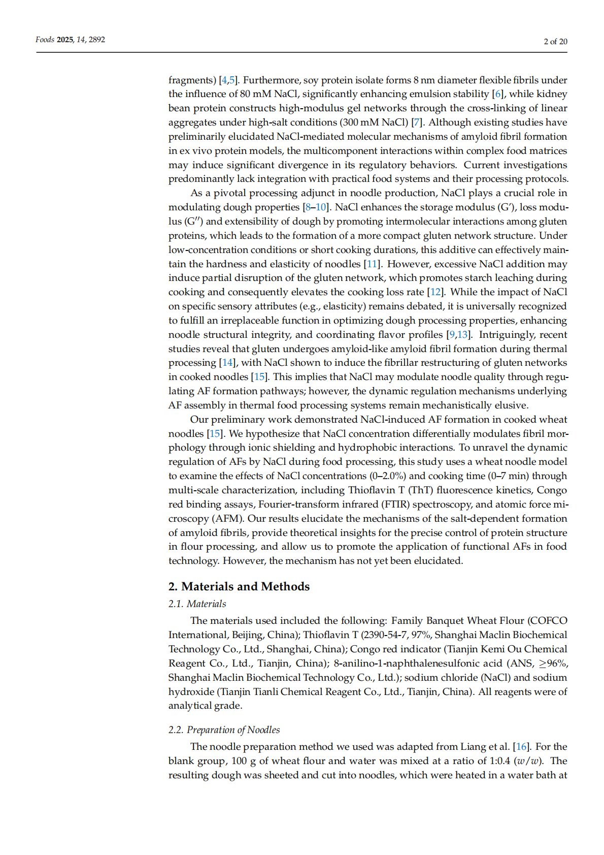 Investigation of the Effect of NaCl Concentrations on the Formation of Amyloid Fibrils During the Cooking of Wheat Noodles