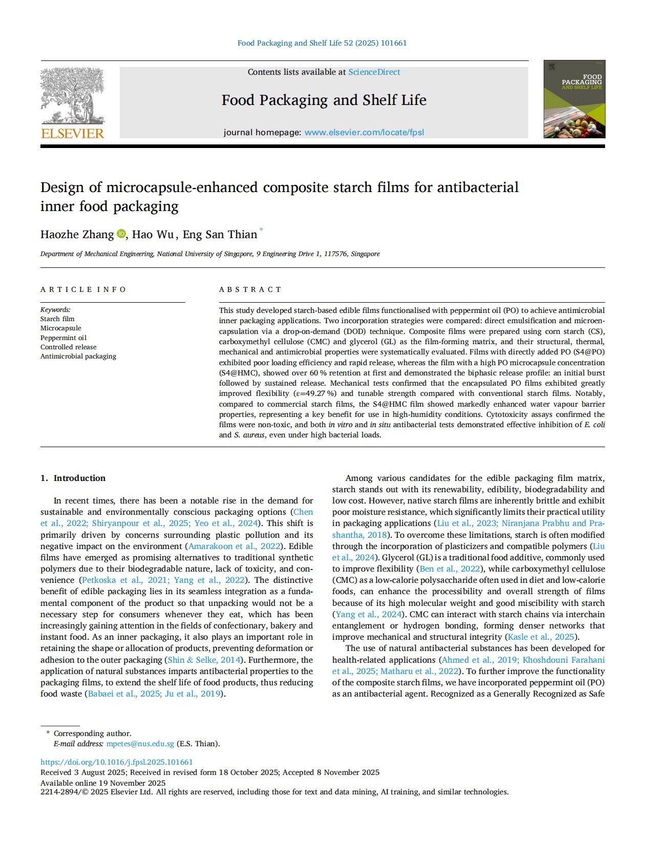 标题:Design of microcapsule-enhanced composite starch films for antibacterial inner food packaging