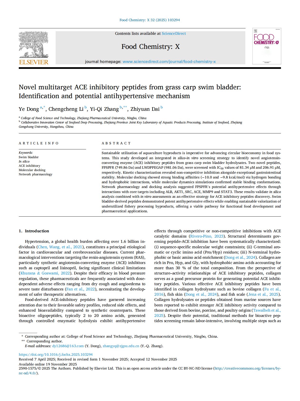 Novel multitarget ACE inhibitory peptides from grass carp swim bladder Identification and potential antihypertensive mechanism