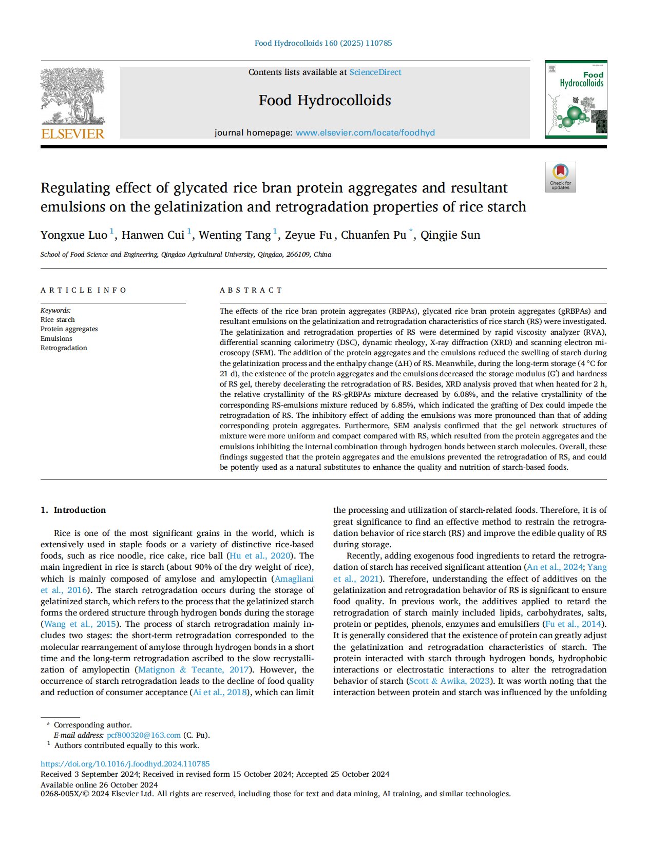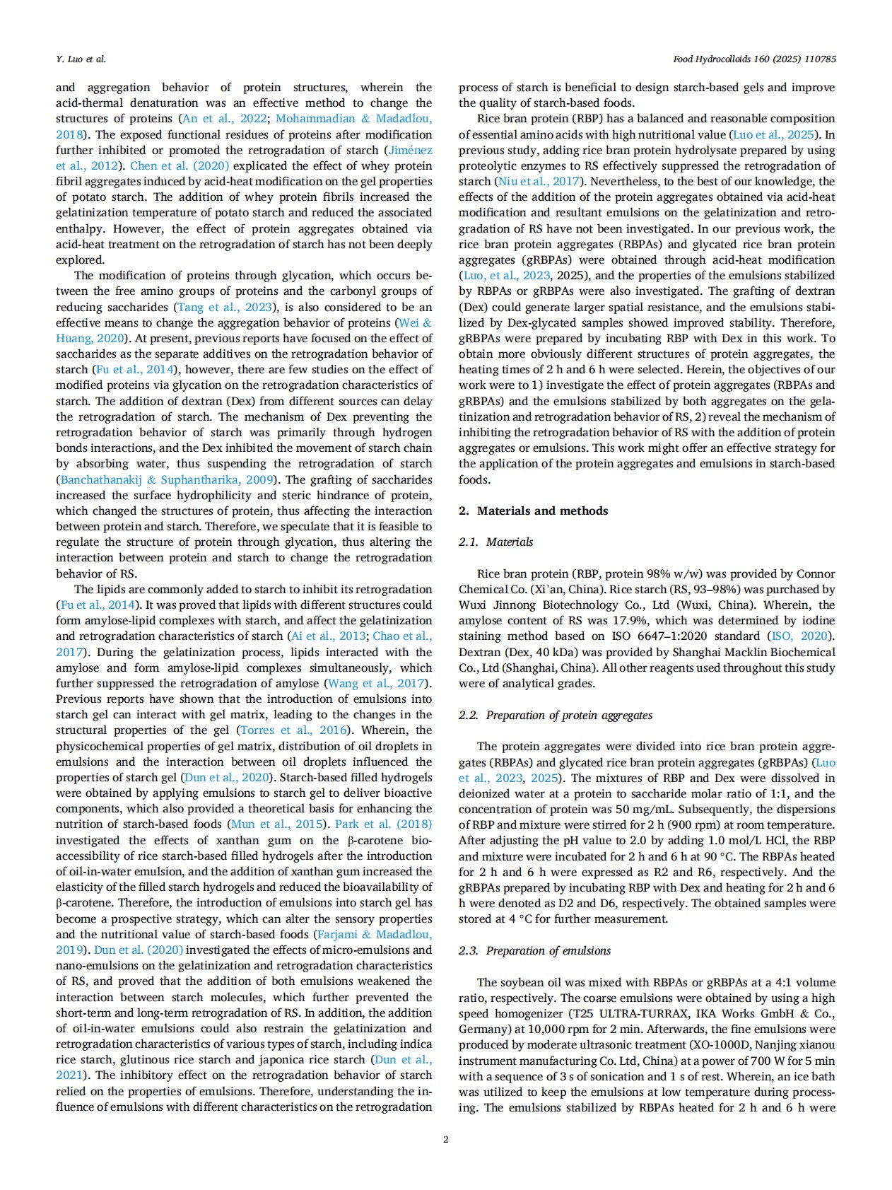 Regulating effect of glycated rice bran protein aggregates and resultant emulsions on the gelatinization and retrogradation properties of rice starch