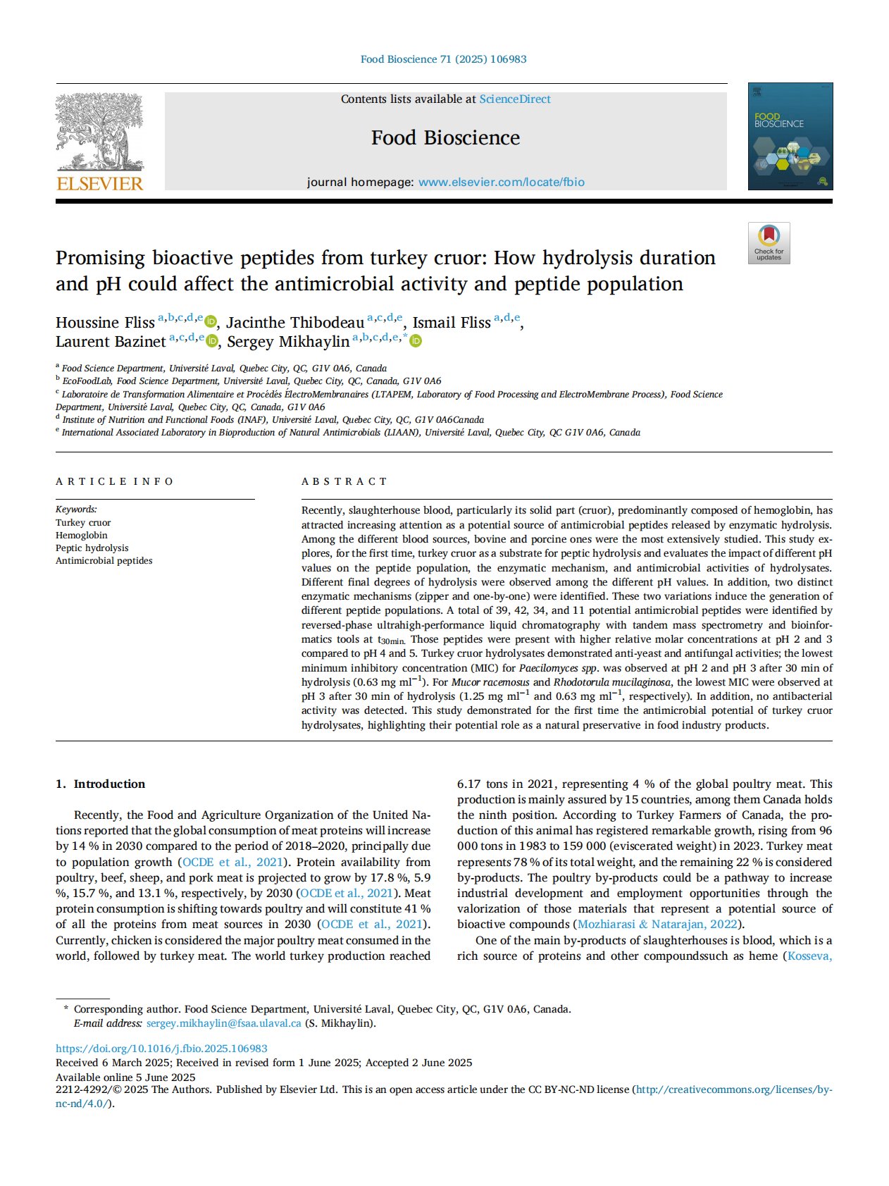 Promising bioactive peptides from turkey cruor How hydrolysis duration and pH could affect the antimicrobial activity and peptide population