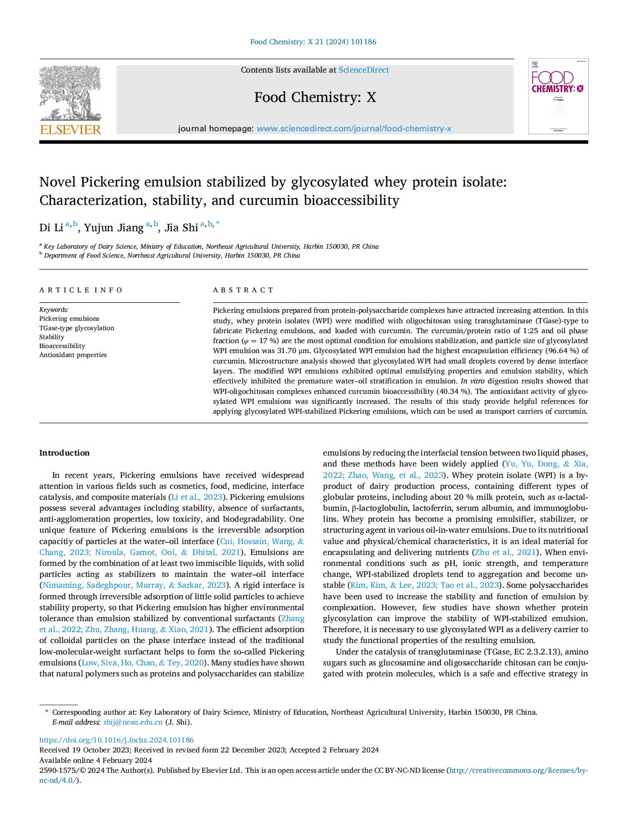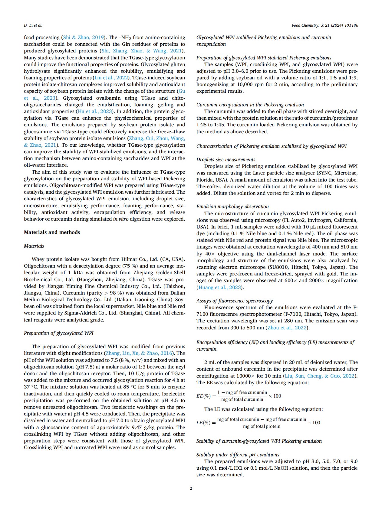 Novel Pickering emulsion stabilized by glycosylated wheyprotein isolate_ Characterization, stability, and curcumin bioaccessibility
