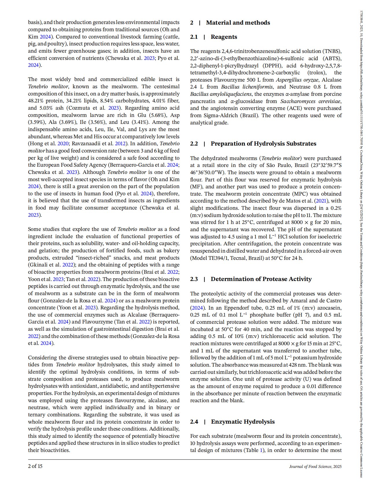 Characterization and Identification of Potential Antioxidant, Antidiabetic, and Antihypertensive Peptides From Hydrolysates of Tenebrio molitor Flour and Its Protein Concentrate