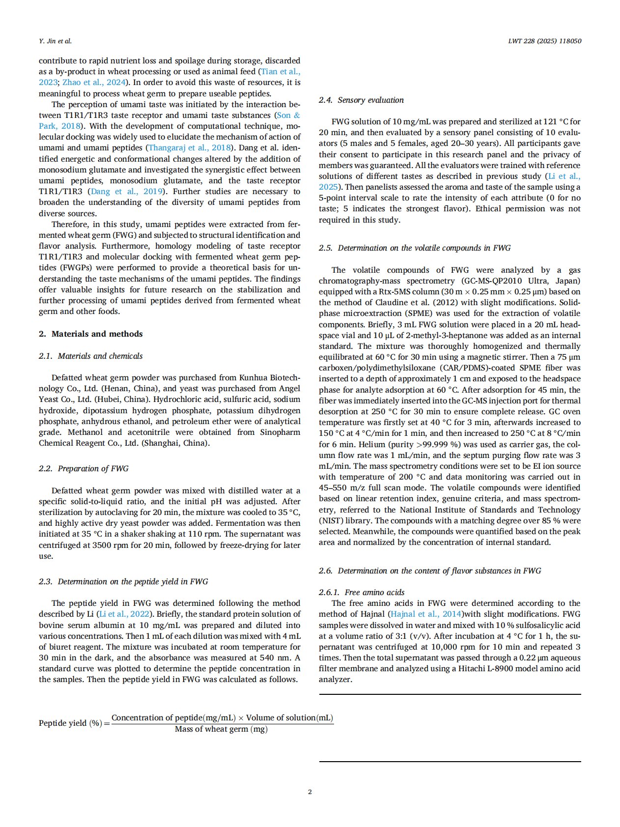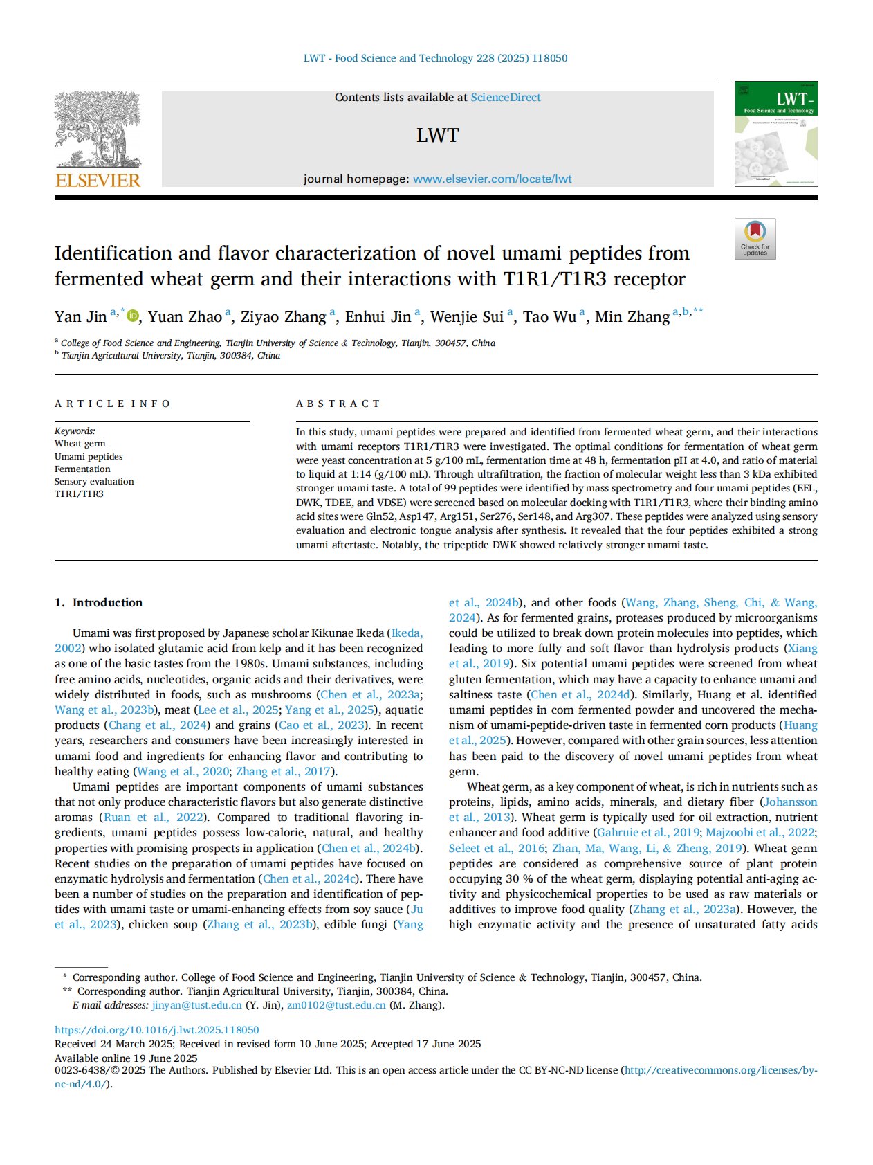 Identification and flavor characterization of novel umami peptides from fermented wheat germ and their interactions with T1R1T1R3 receptor