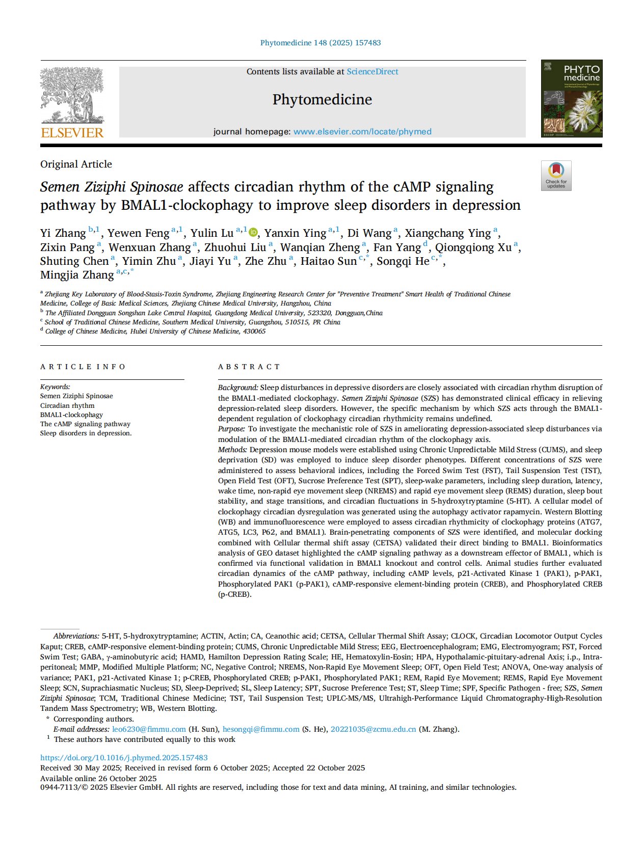 Semen Ziziphi Spinosae affects circadian rhythm of the cAMP signaling pathway by BMAL1-clockophagy to improve sleep disorders in depression