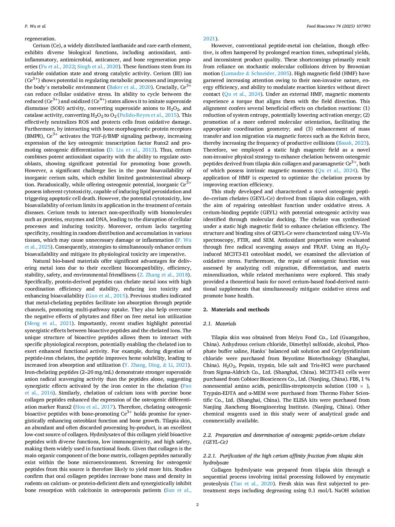 High magnetic field-assisted preparation of food-derived collagen peptide-cerium (III) chelate: reducing oxidative stress and helping restore osteoblast function