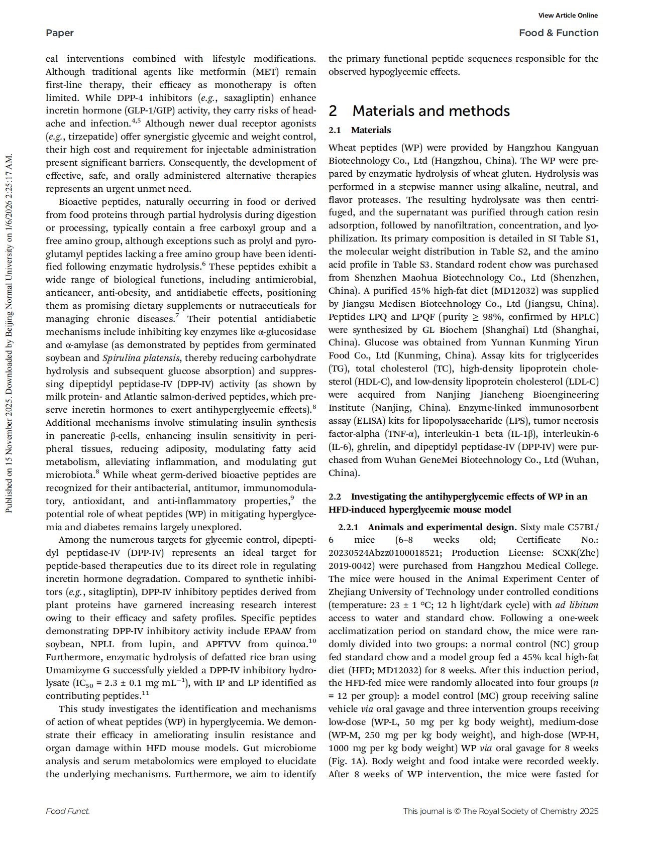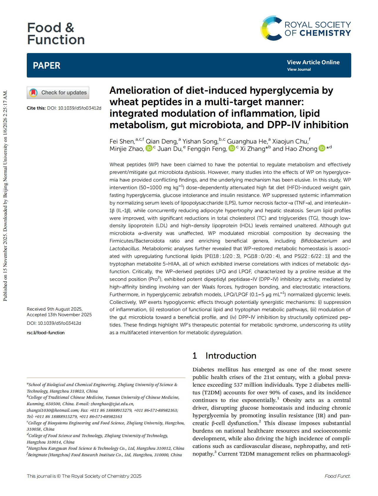 Amelioration of diet-induced hyperglycemia by wheat peptides in a multi-target manner: integrated modulation of inflammation, lipid metabolism, gut microbiota, and DPP-IV inhibition