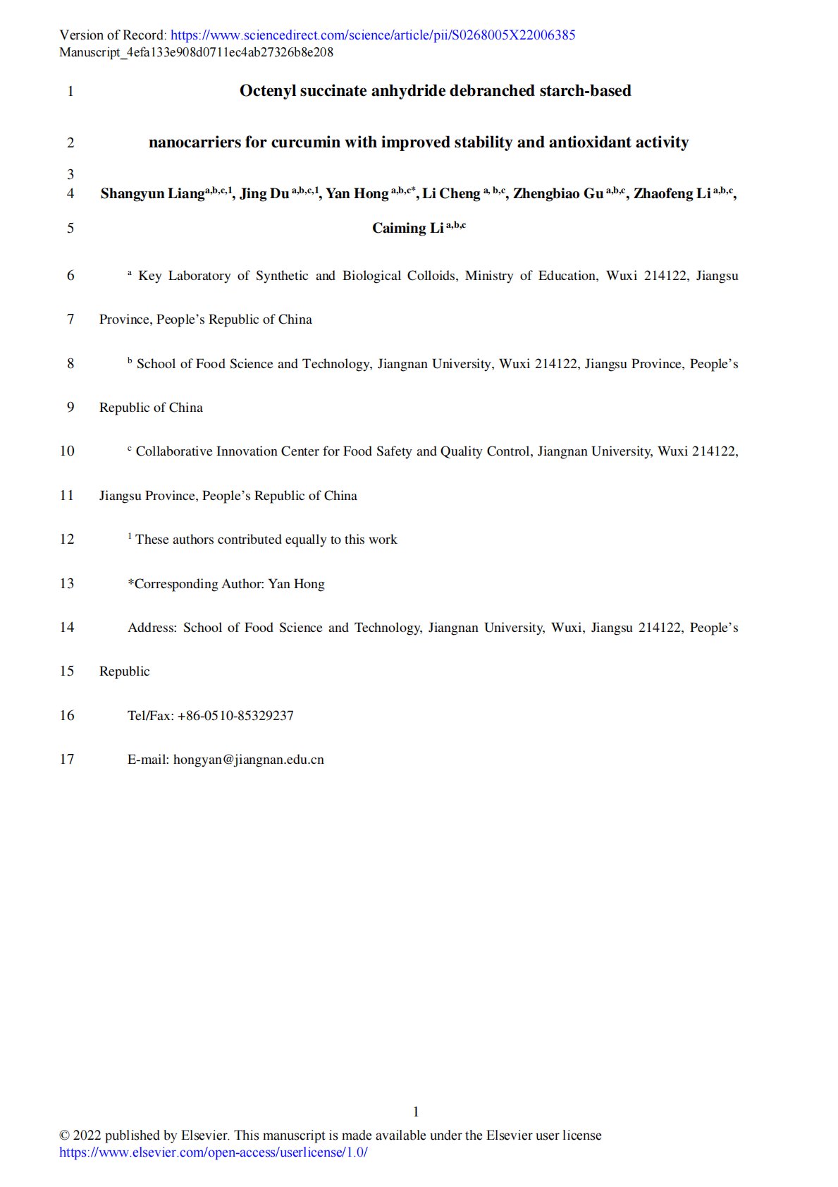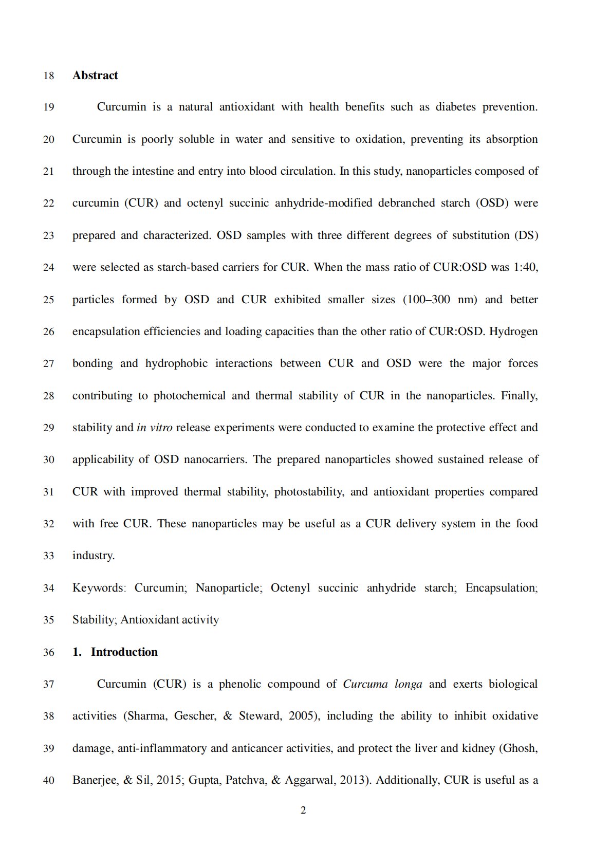 Octenyl succinate anhydride debranched starch-based1 nanocarriers for curcumin with improved stability and antioxidant activity